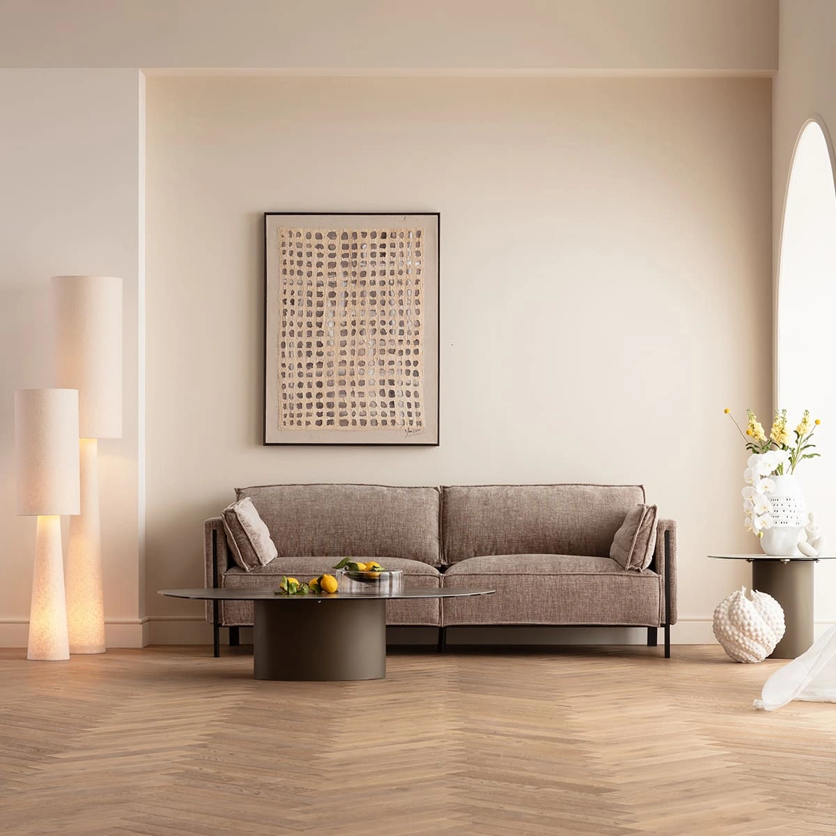 Built for lasting durability and superior comfort, the Victor sofa features upholstery supported by a spring core, belt suspension, and plush foam padding ensuring a supportive yet soft seating experience. The frame is made from natural, untreated eucalyptus solid wood, offering strength and stability, while the powder-coated steel legs add a modern touch and secure foundation. With its classic proportions and thoughtful detailing, this 3-seater sofa balances comfort, style, and craftsmanship effortlessly.