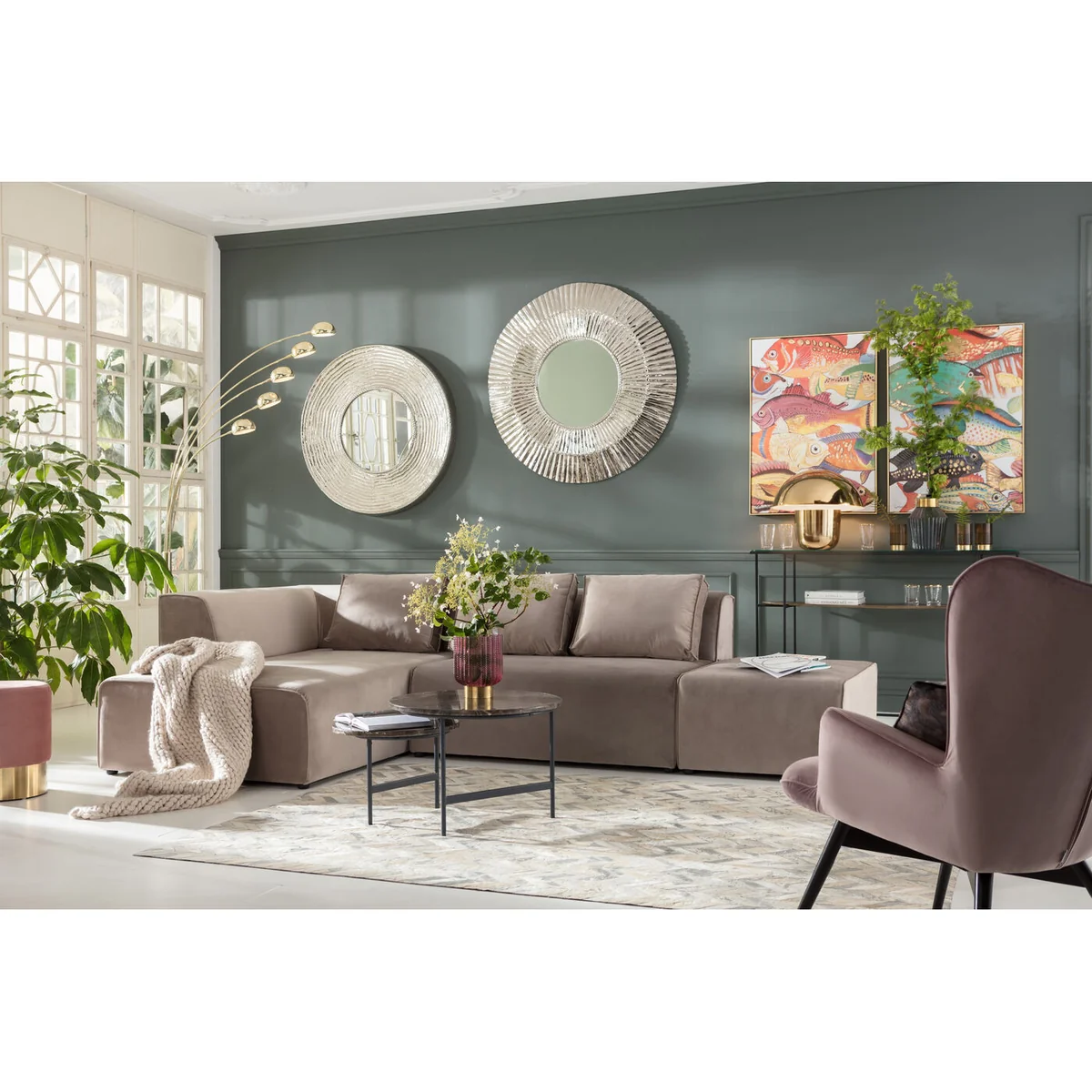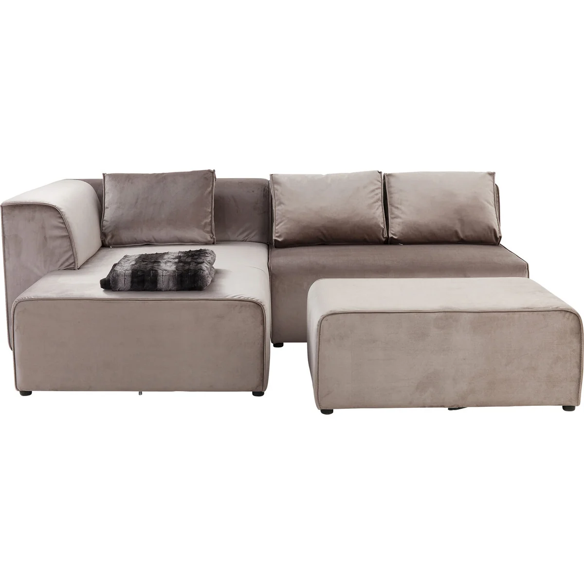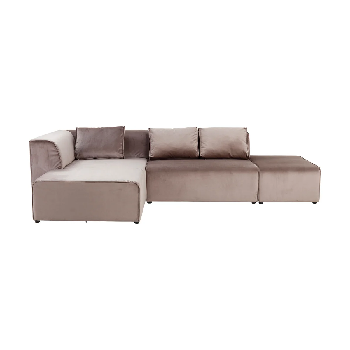 Experience luxurious comfort and flexible living with the Infinity Velvet Corner Sofa in taupe. Part of the modular Infinity series, this left-oriented design combines a sleek, straight-lined silhouette with irresistibly soft velvety upholstery, making it a stylish and inviting centerpiece for any modern home. The rich taupe tone blends seamlessly with both neutral and bold décor schemes, giving you endless styling possibilities.