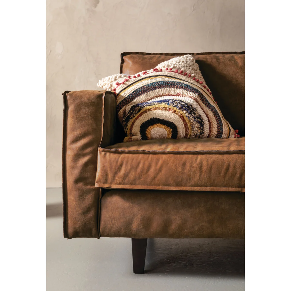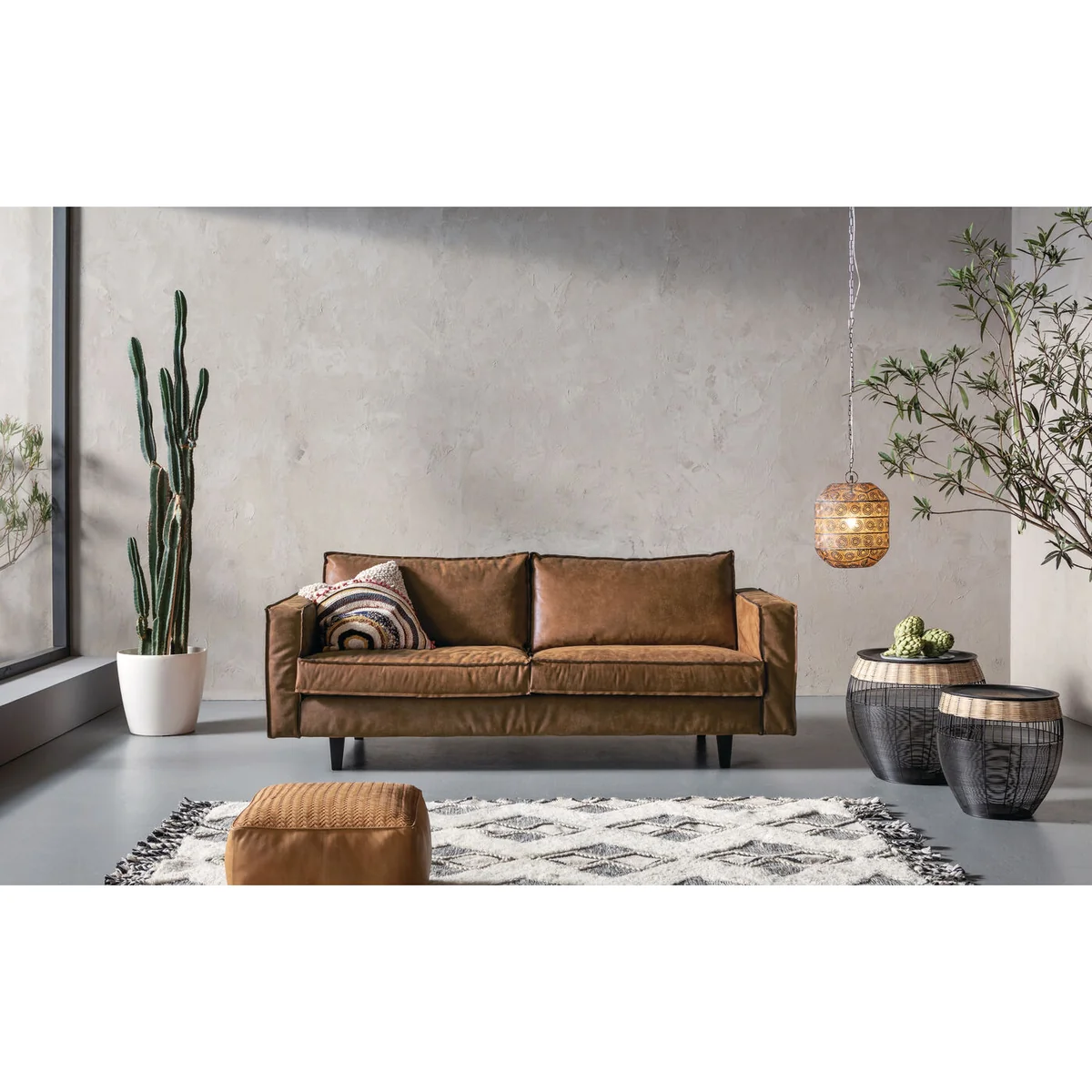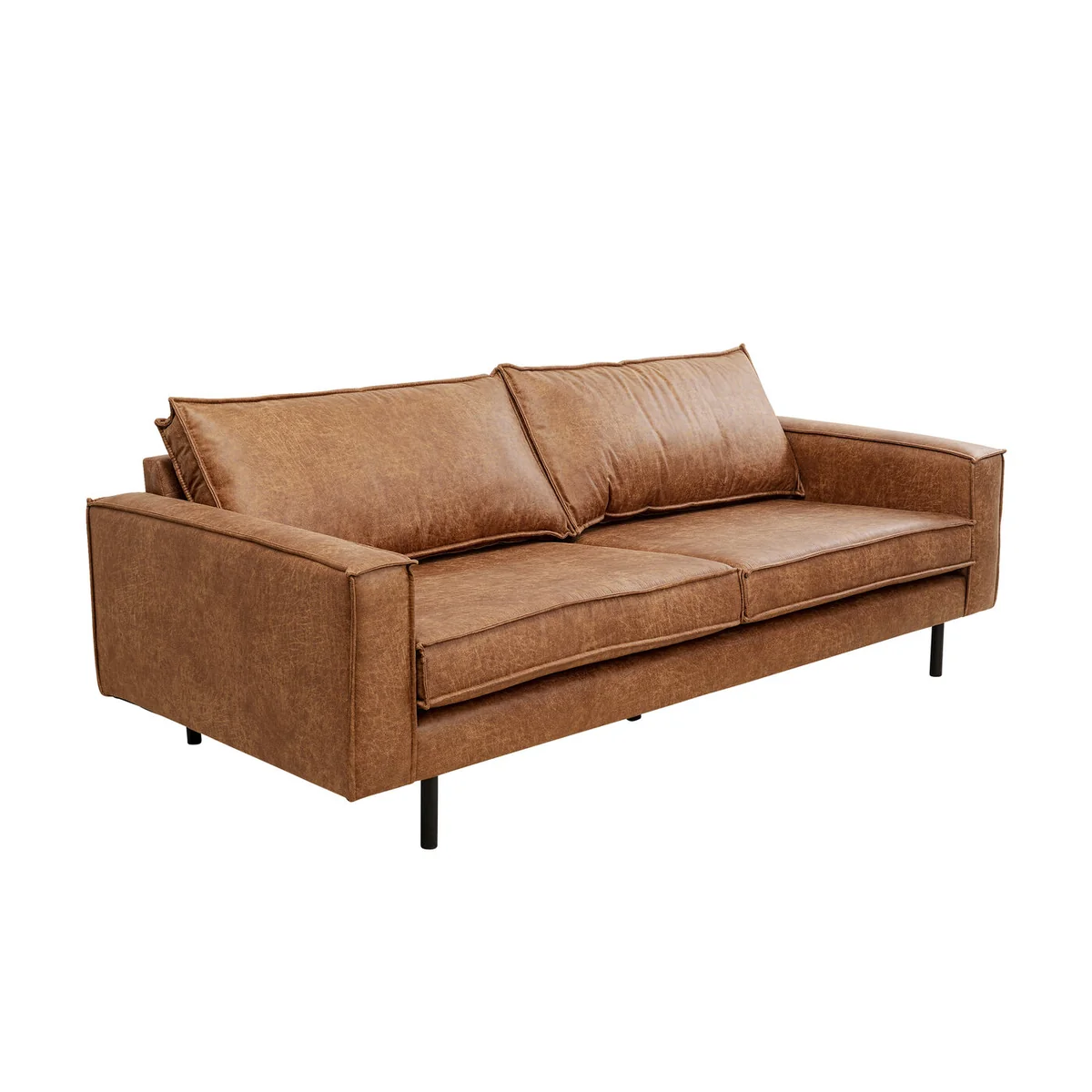 • A classically stylish sofa in leather look with sleek lines • The perfect place in the living room as a comfortable chill zone • The cover in chic tobacco is an easy-care, robust fabric with a leather component • Earth tones are homely, cosy and are good for the soul • Large upholstered cushions, cubic shape: with its clarity this design brings calm into the room