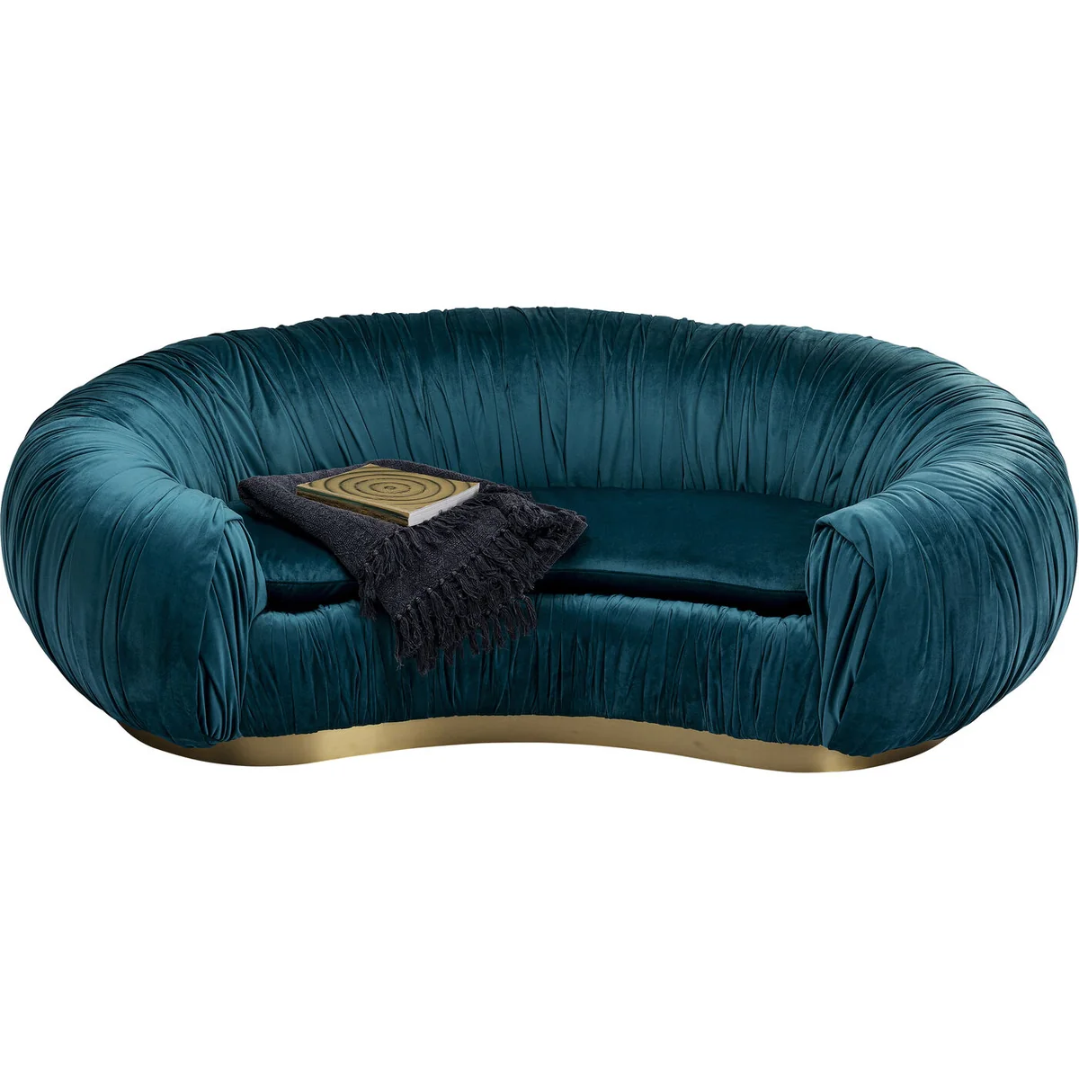 Crafted with a solid wood body for durability, the Perugia sofa combines elegant pleating, an easy-care synthetic velvet cover, and a sturdy titanium-finished steel base. Its deep emerald color enhances the dramatic aesthetic, while the generously cushioned seat supports up to 300 kg. At 195 cm wide and fully assembled upon delivery, it offers a premium and convenient seating experience.