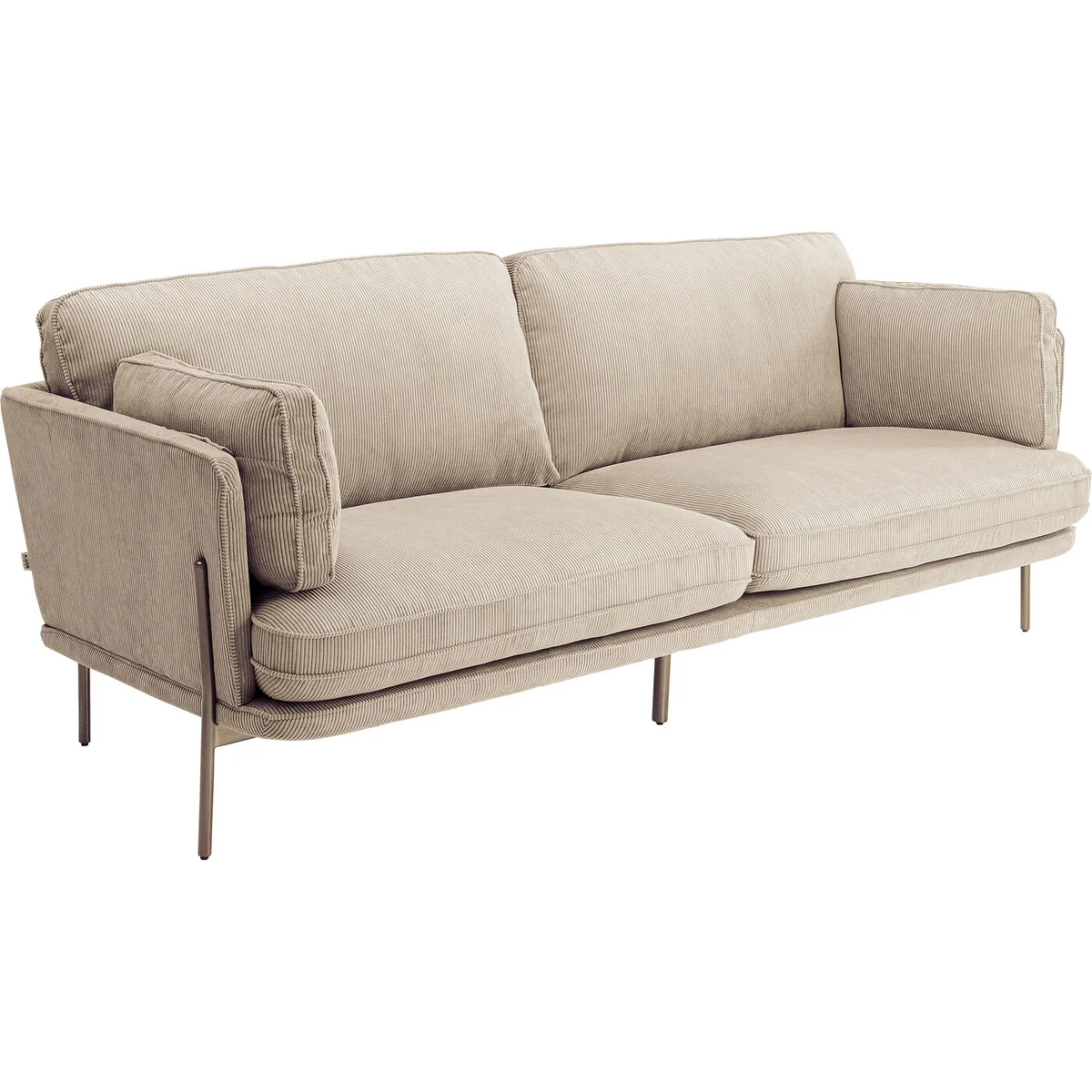 - Velvet with a ribbed structure: a wonderfully soft three-seater that skilfully picks up on the trend theme of corduroy - Sofa in cream: delicate beige and a brass-coloured frame are particularly easy to combine - Real seating comfort: with a width of 221 cm and a seat height of 45 cm, the seating area invites you to linger - Solidly made: the sturdy wooden frame and the lacquered steel base easily support 480 kg - Supplied fully assembled: you can put the couch in your living room or office straight away - against the wall or free-standing in the room