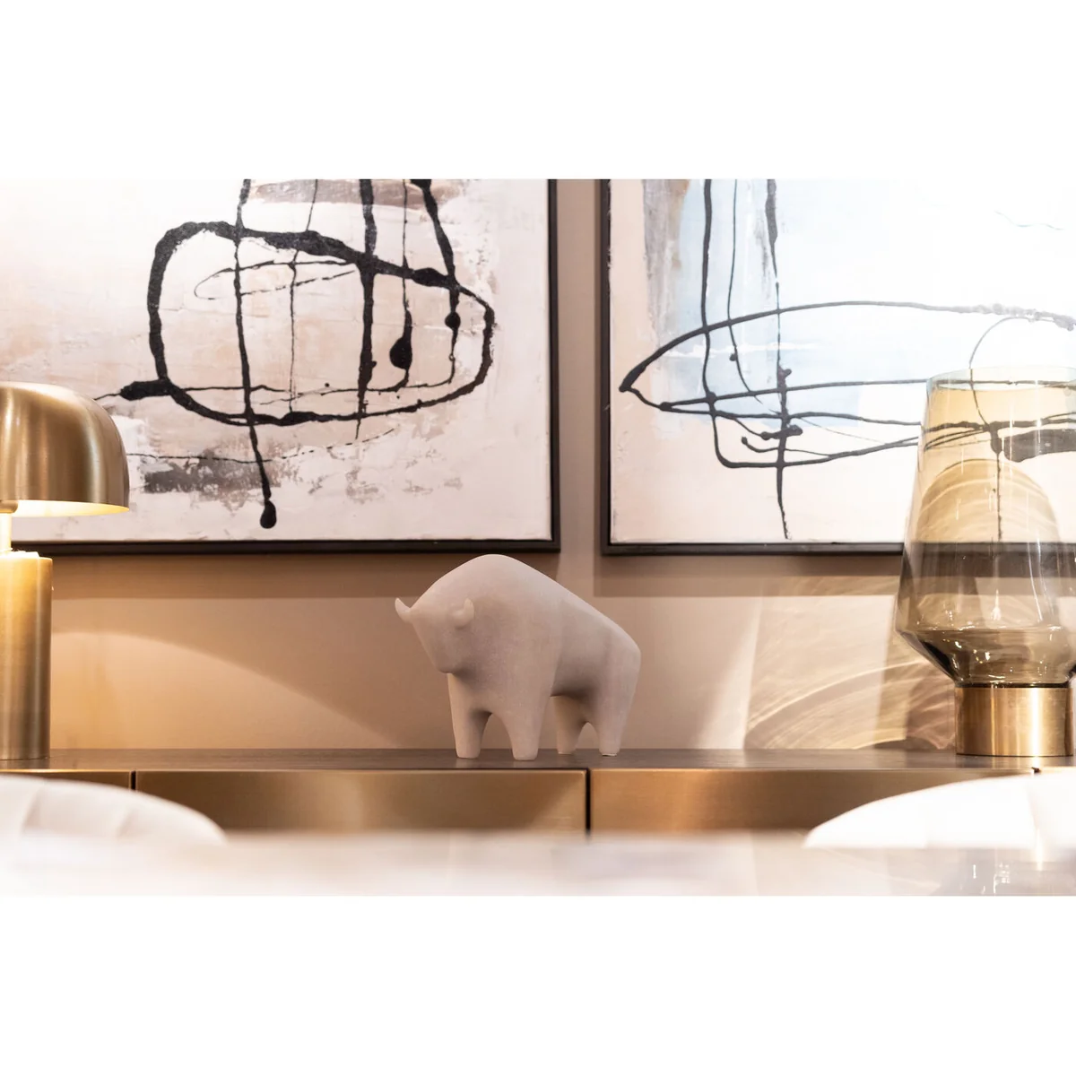 This abstract bull figurine measures 29cm long, 12cm wide, and 20cm high. Its unique design interprets the bull's powerful symbolism with a soft surface that provides an exciting contrast to the dynamic stance. The sculptural shape lends any room a modern aesthetic, while the subtle white color scheme ensures timeless elegance. Made of high-quality polysandstone, the figurine impresses with its sturdy workmanship.