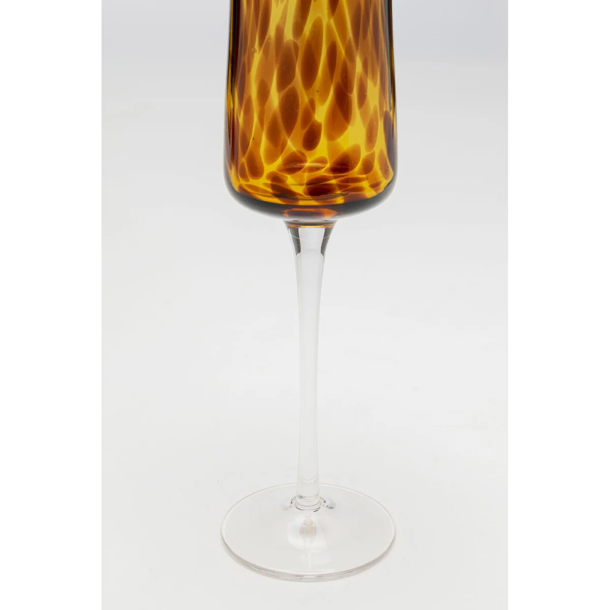 Experience the warmth and elegance of the Sparkling Champagne Glass in Brown Glass at your table. Its amber shimmer and artistic, mottled look, reminiscent of fine natural stone, present a unique aesthetic.