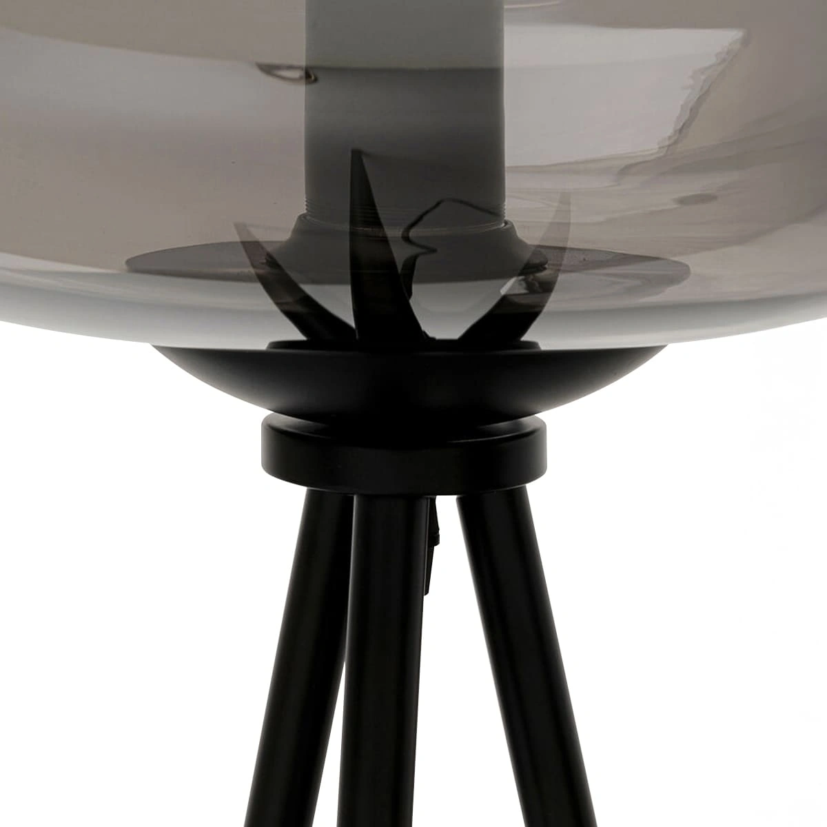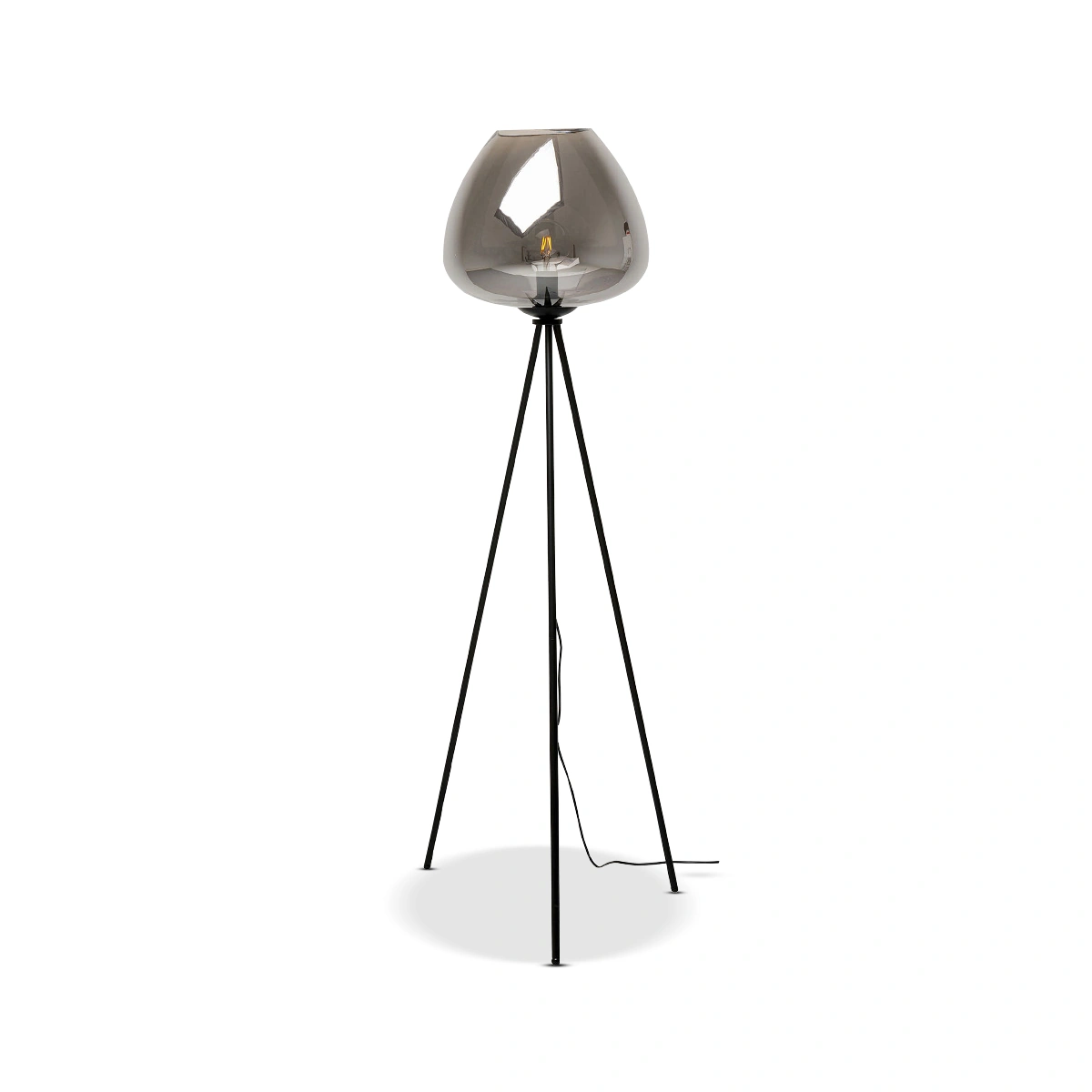 Elegance meets modern design! This imposing floor lamp combines a sophisticated galvanized glass lampshade with a three-legged metal frame in deep black, finished with a touch of brass for a luxurious finish. As a stylish eye-catcher next to a sofa or armchair, it provides soft light for a cozy atmosphere or focused brightness for reading. It looks particularly harmonious with dark wooden furniture, soft shades of gray and velvety textiles for a sophisticated living ambience.