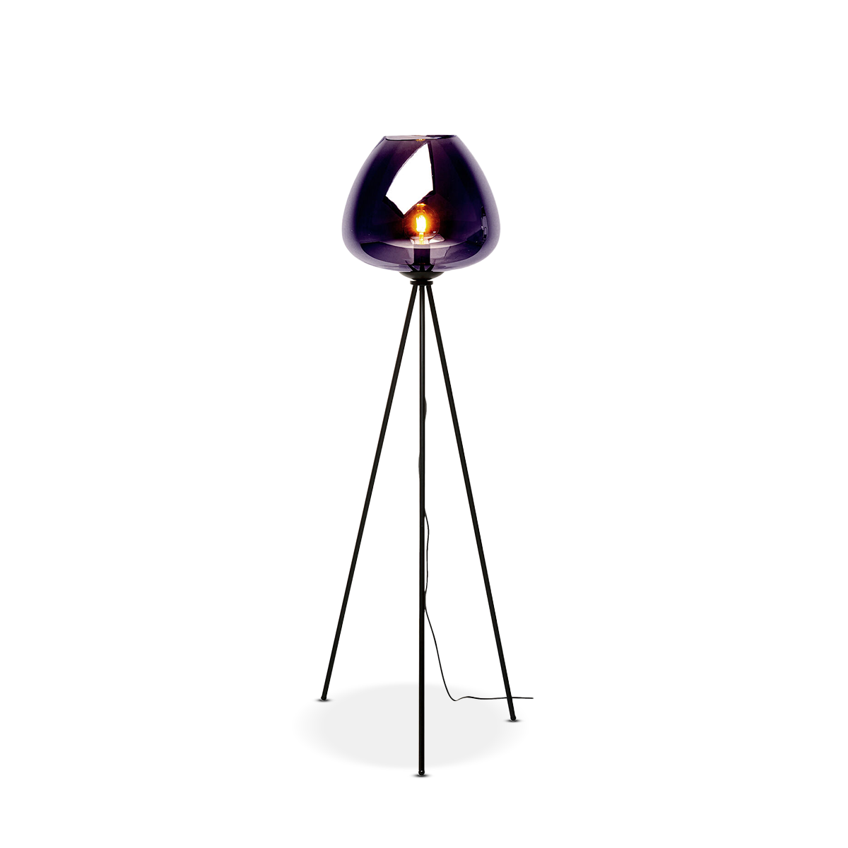 Sphere Floor Lamp in Blue combines bold design with ambient lighting. The reflective glass shade and brass-finish frame bring a contemporary edge to living rooms or bedrooms. Ideal as a statement piece beside a sofa or reading chair, it offers both function and visual interest.