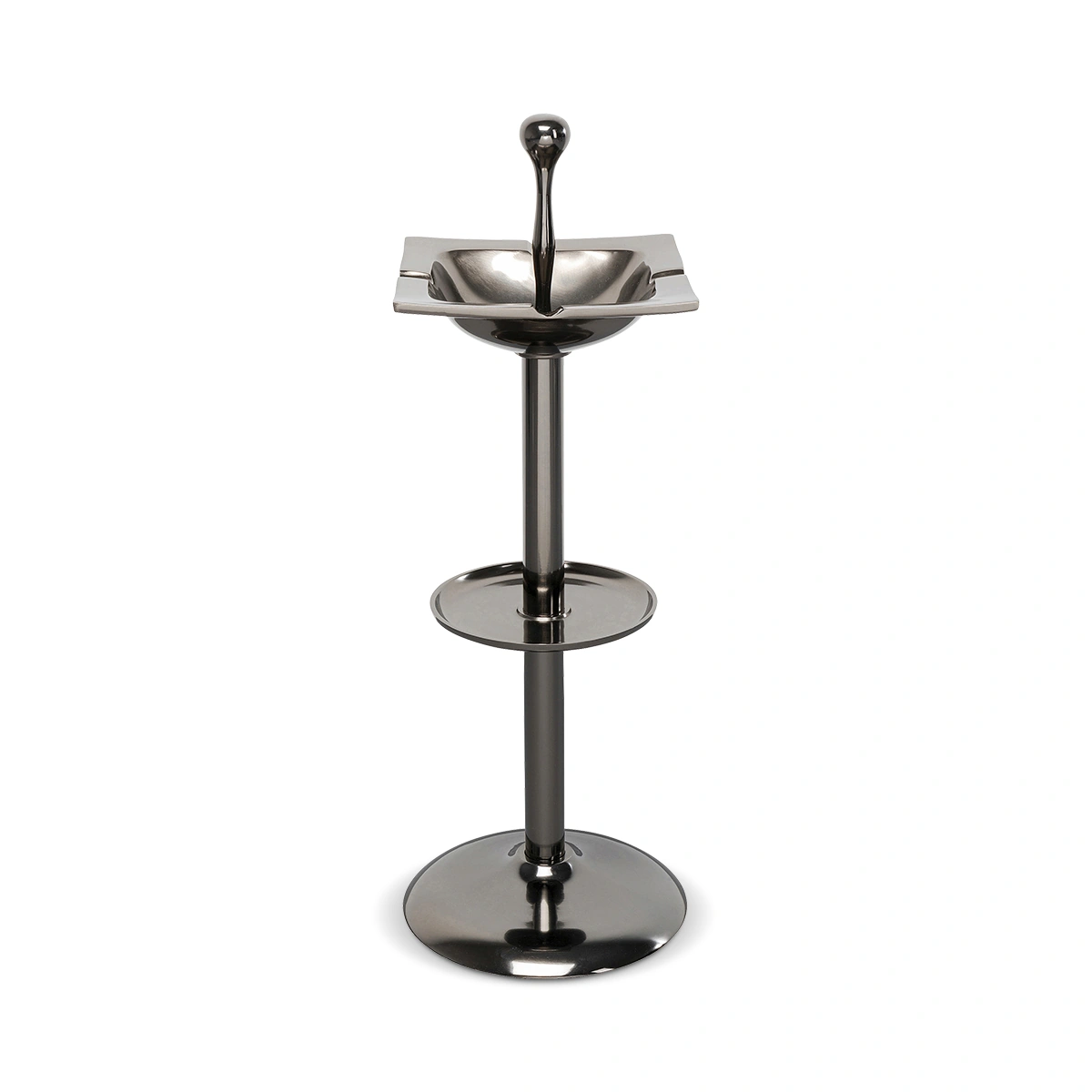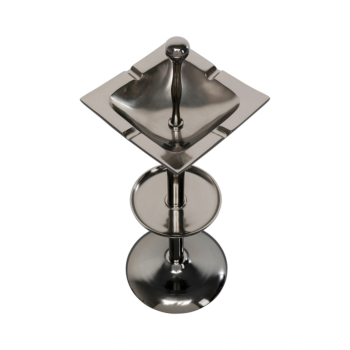 Silver Square Ashtray Stand in Polished Aluminum