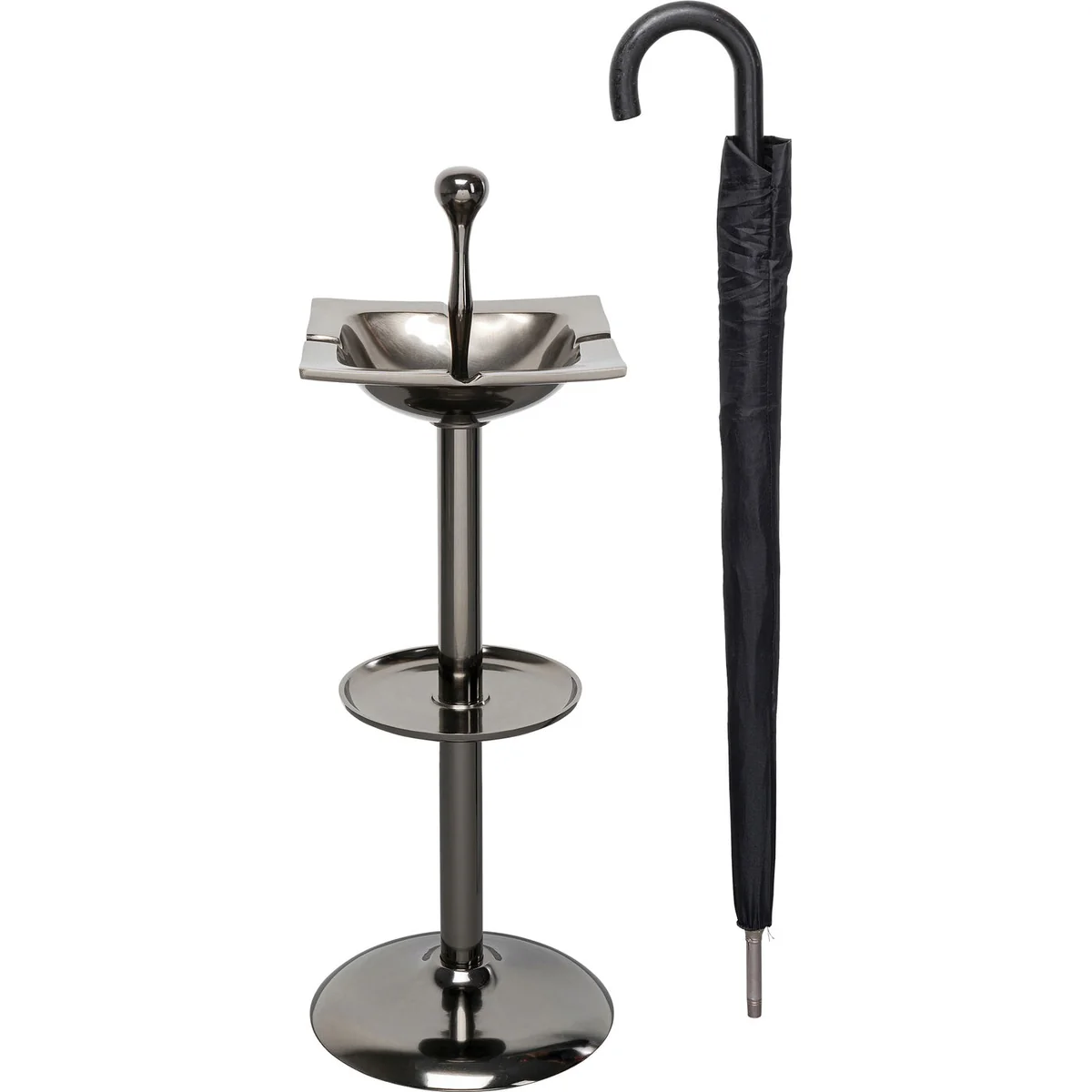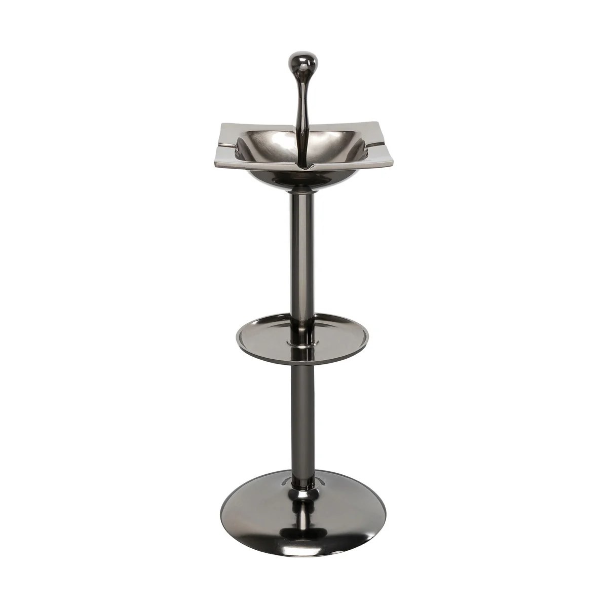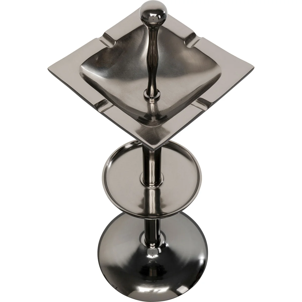 This contemporary smoking accessory features a sleek form, perfectly crafted from polished aluminum. With dimensions of L 28 cm, W 28 cm, and H 76 cm, it's compact enough to fit in any corner yet stands out as a modern decor piece. Its silver hue adds a touch of elegance to its surroundings.