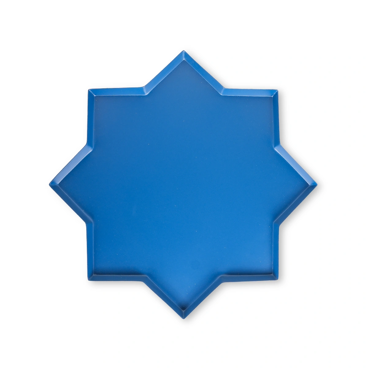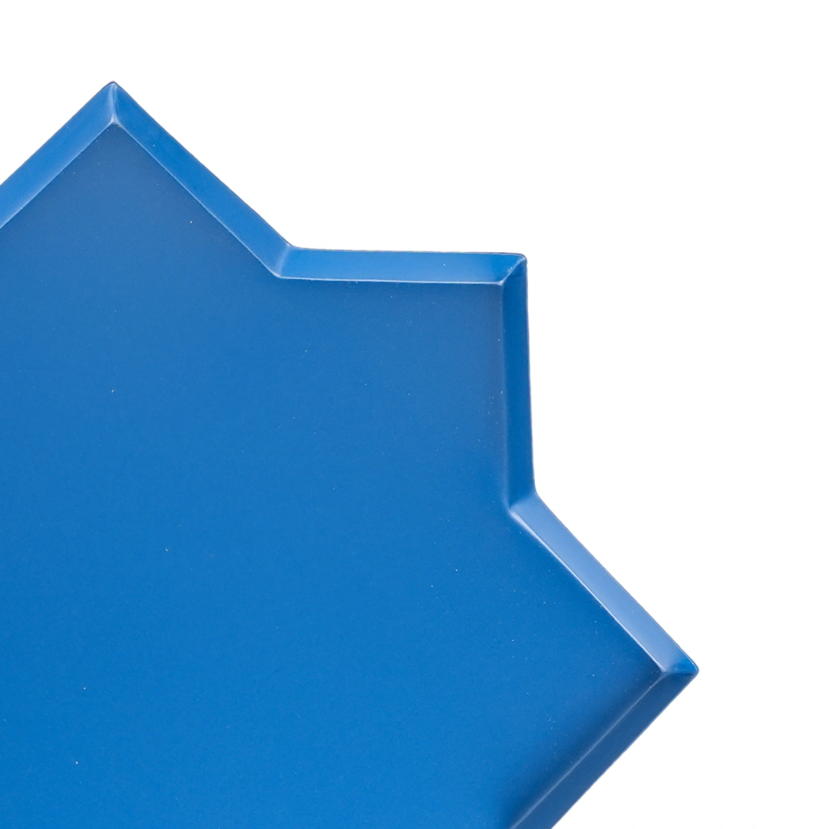 The Star Tray in Blue is brass-plated metal and powder-coated finish gives this star-shaped tray an elegant and celestial appeal. Its deep blue tone adds a refined touch to your serveware collection, making it perfect for entertaining or display.