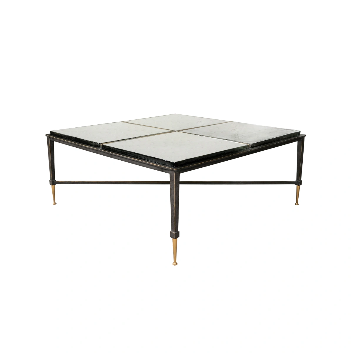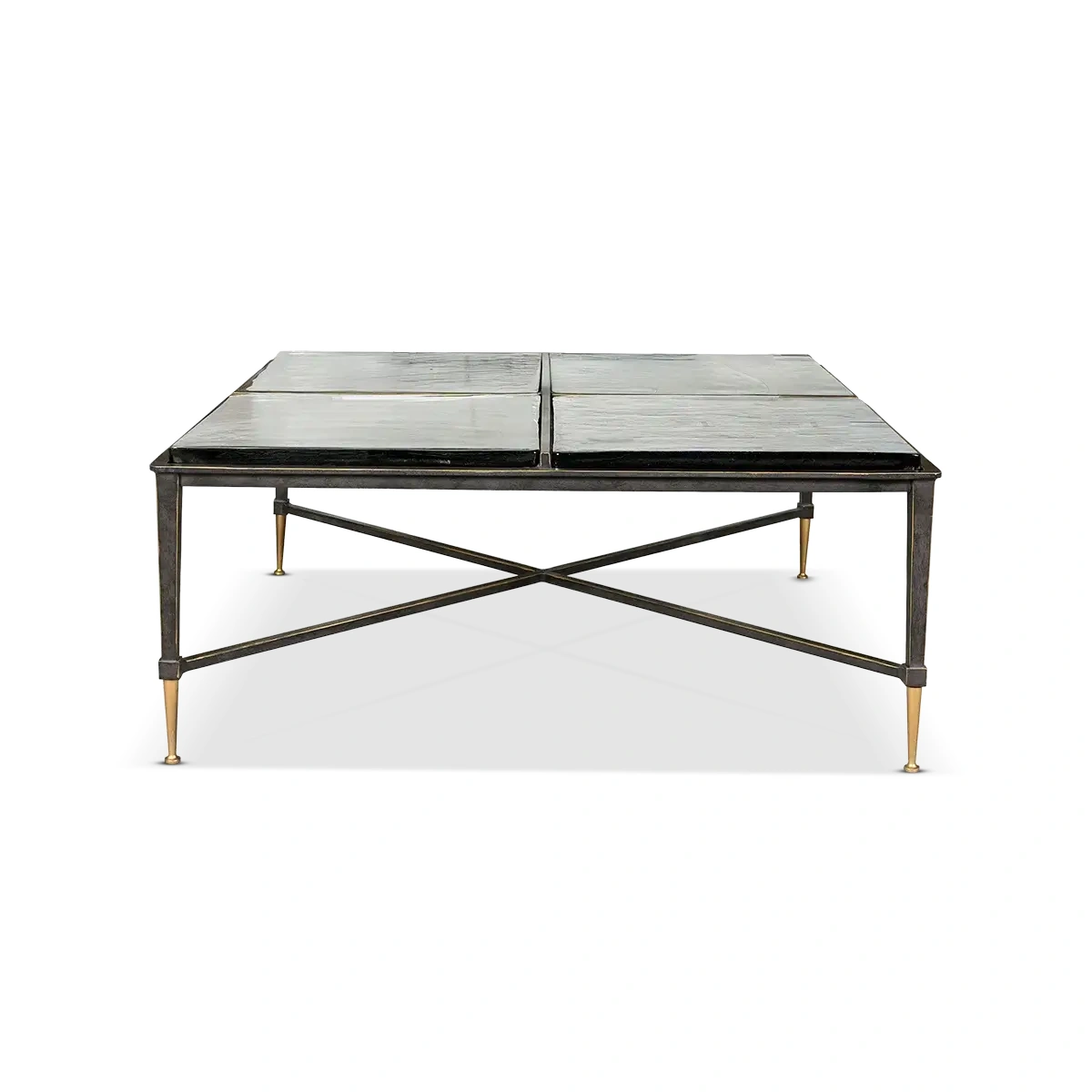 The Stella Coffee Table in brick-tinted glass and silver iron is a statement piece for your contemporary living room.