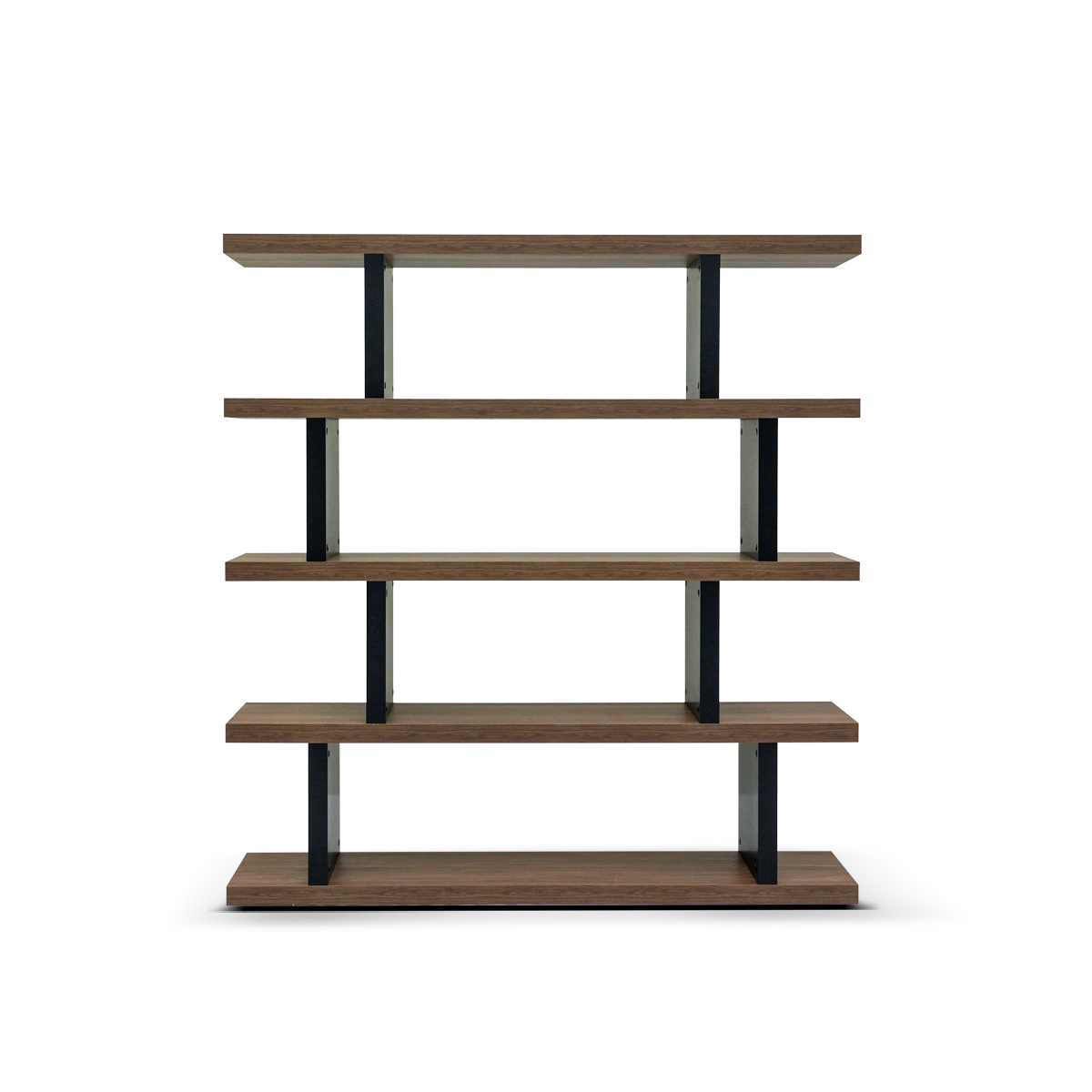 Introduce a modern aesthetic to your space with the Step Bookcase High in a walnut look. This contemporary design piece adds sophistication and functionality to any room.