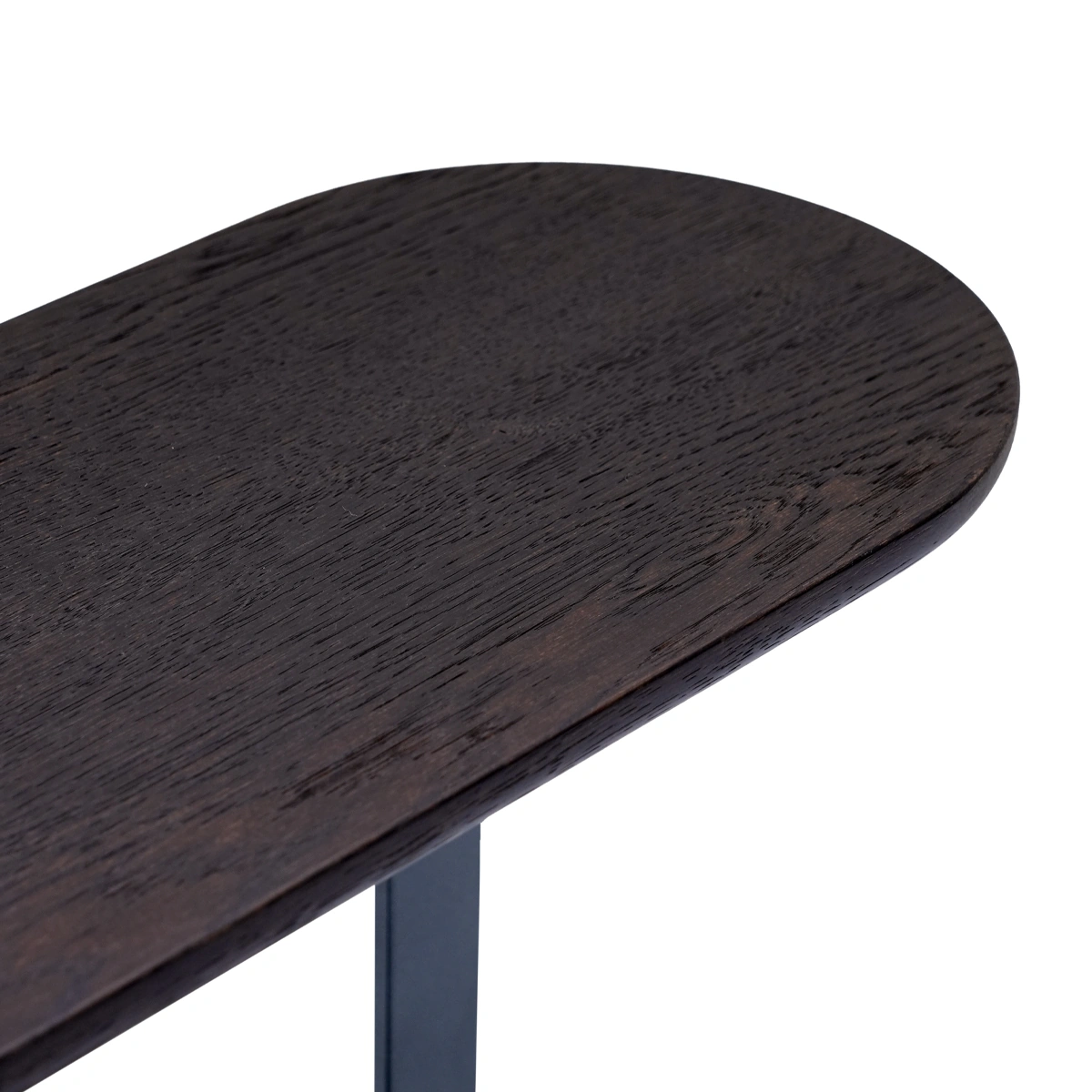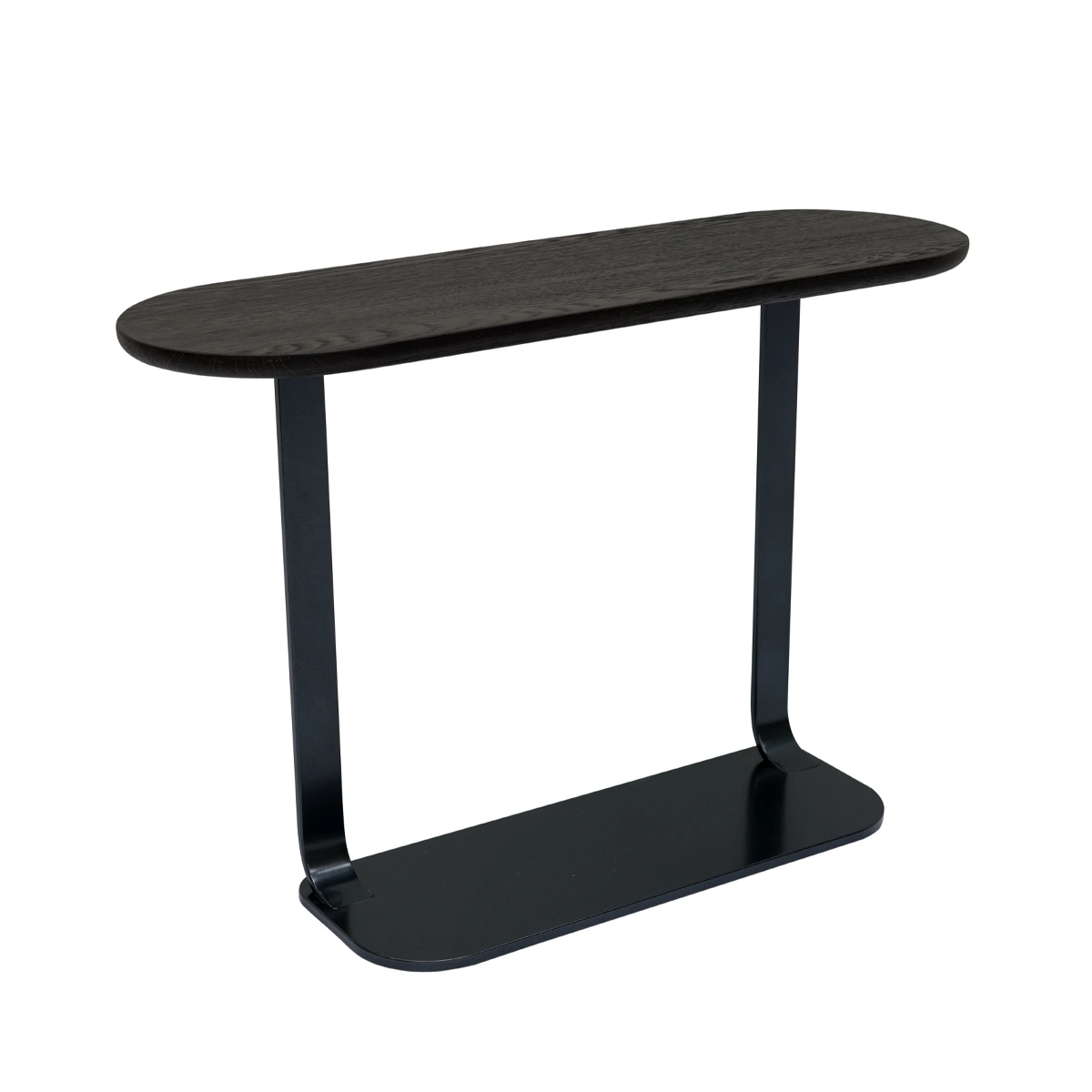 Transform your room with the stunning Stolik Metro Table H49 from Chattels & More. This modern, minimalist table adds a refined touch with its sleek walnut top and slender steel legs. At just 75cm long and 50cm high, it's sized to fit small spaces while providing an ample work surface or display area. The smooth wooden top and matte black metal base create an elegant two-tone look. With its simple yet sophisticated design, the Stolik Metro Table brings stylish functionality to any space. Key Features: • 75cm long x 25cm deep x 50cm high • Walnut wooden top • Painted steel legs in matte black • Minimalist, modern design This compact table is perfect for small homes or apartments where space is limited. Place beside a sofa or next to your bed to hold a lamp, books, or decor. The smooth walnut top also works well as a desk for a laptop or writing area. The slender metal legs create an airy feel, making the table seem visually lighter