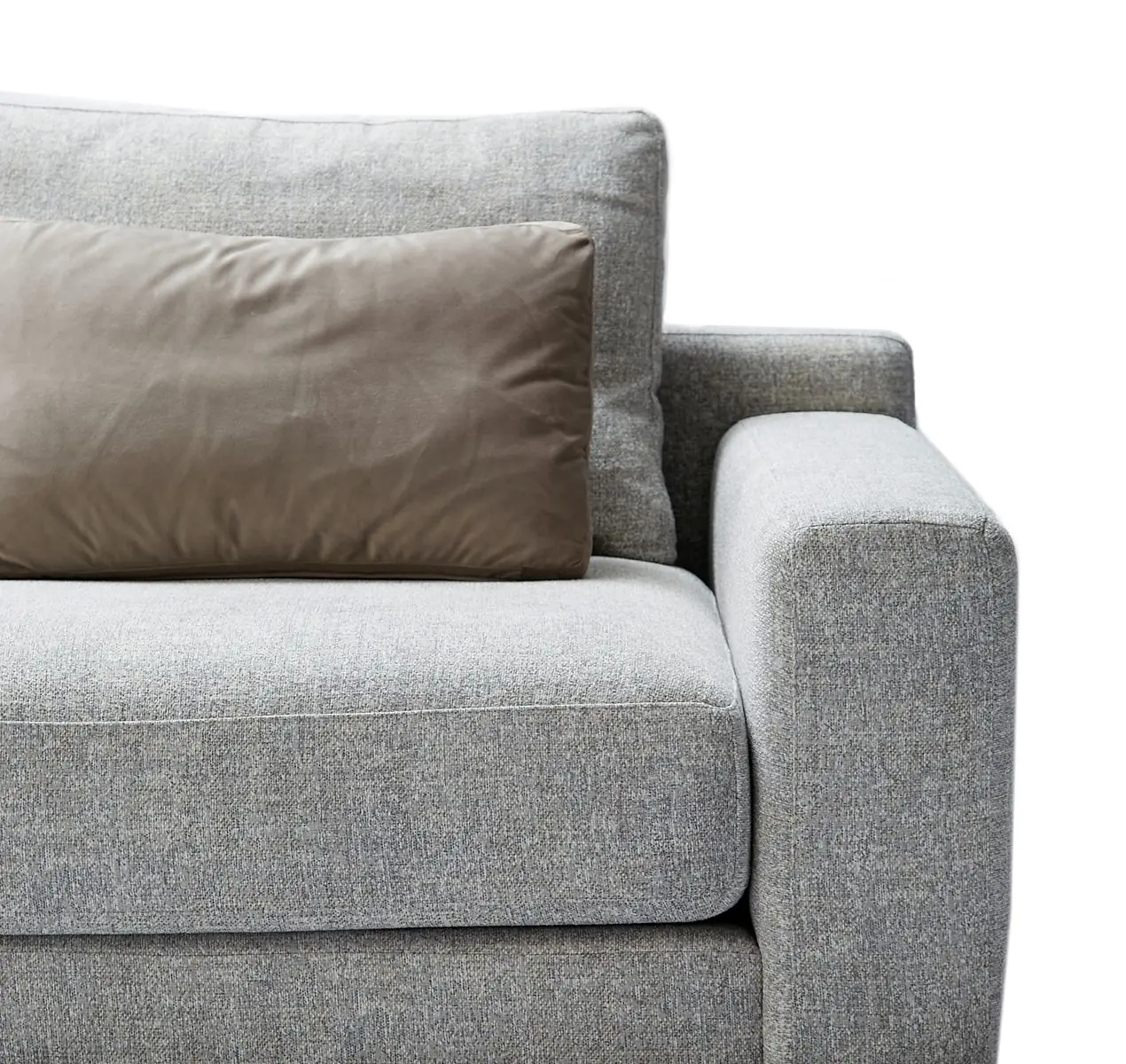 Upholstered in a premium combination of cotton-linen blend and polyester-velvet, the Stone sofa delivers a textured, soft-touch finish that feels luxurious yet practical for daily use. The seat cushions are made with highly flexible polyurethane foam for lasting comfort, while the back cushions are filled with plush goose feathers that provide supportive softness. The solid frame—crafted from pine wood, plywood, and chipboard—ensures durability and stability. Plastic legs keep the look streamlined and lightweight while supporting the overall structure.