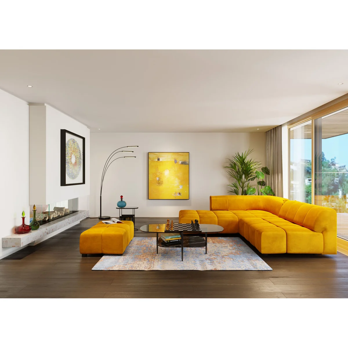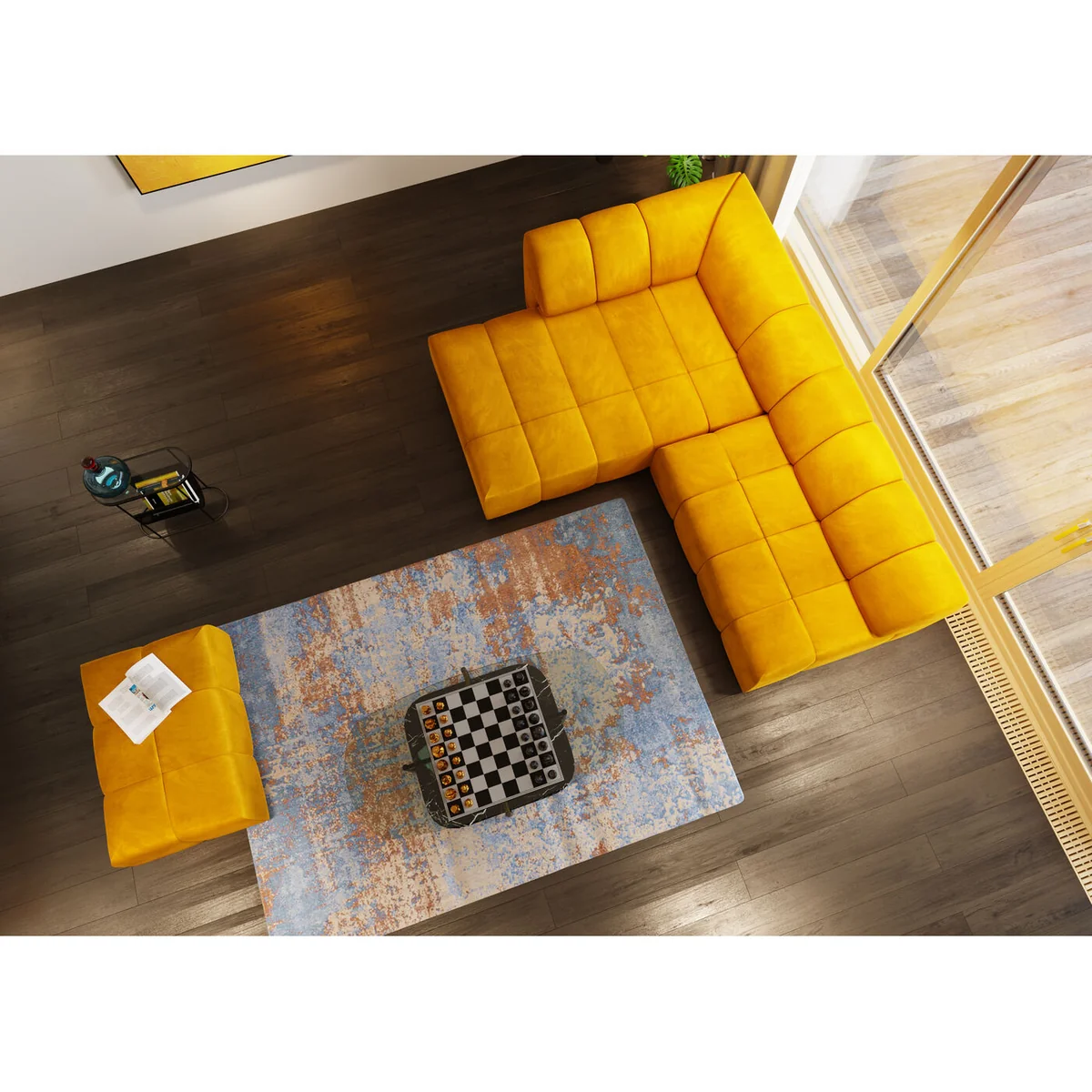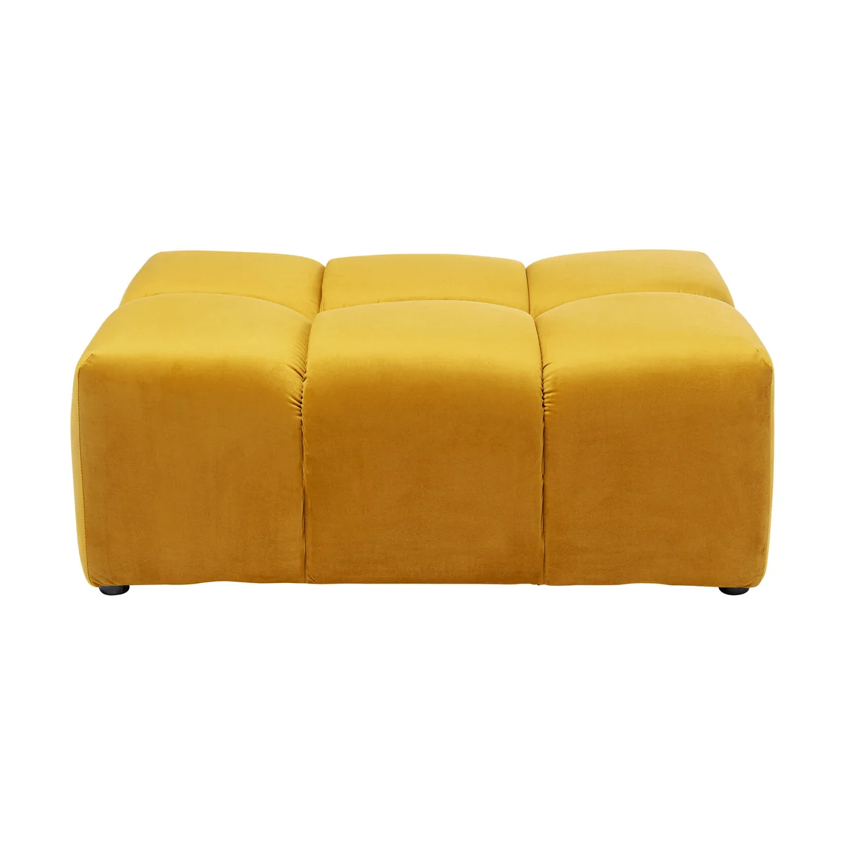 The advantage of upholstered footstools is their versatility. First and foremost, you create more cosiness with an upholstered footstool. Furniture with a textile cover basically generates a homely atmosphere. And putting your feet up on a large velvet stool is known to promote relaxation. A stool is also a flexible piece of furniture that, if necessary, you can use as a coffee table if you put a tray on top. Placed in front of floor-to-ceiling windows, the stool allows you to create an additional seating area without obstructing the view. If you have space in the hallway, you can place this large and wide stool under the coatrack on the wall. In this way it provides storage space, makes the hallway cosy and provides seating while you put your shoes on.