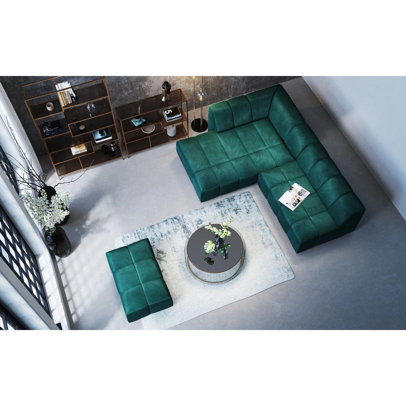 • The modern design of the upholstered footstool is enhanced by the quilting and cube look