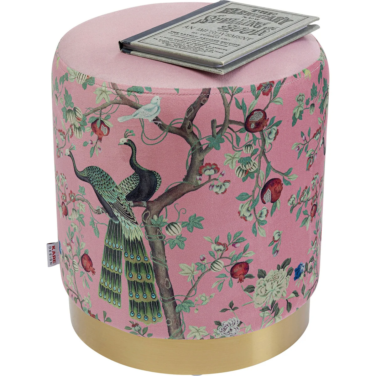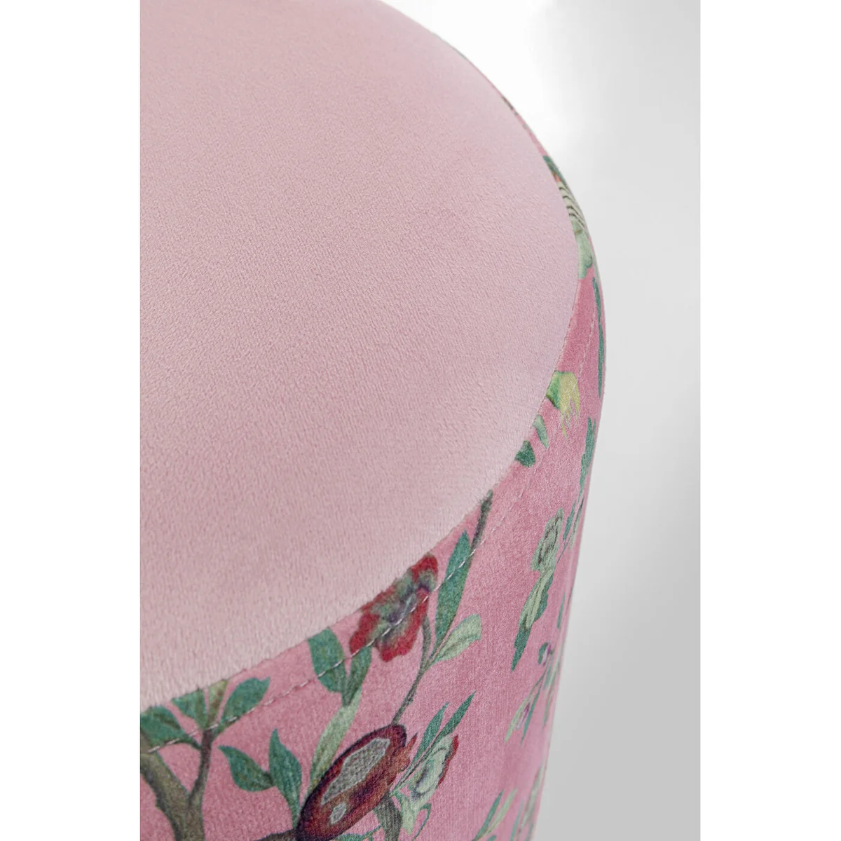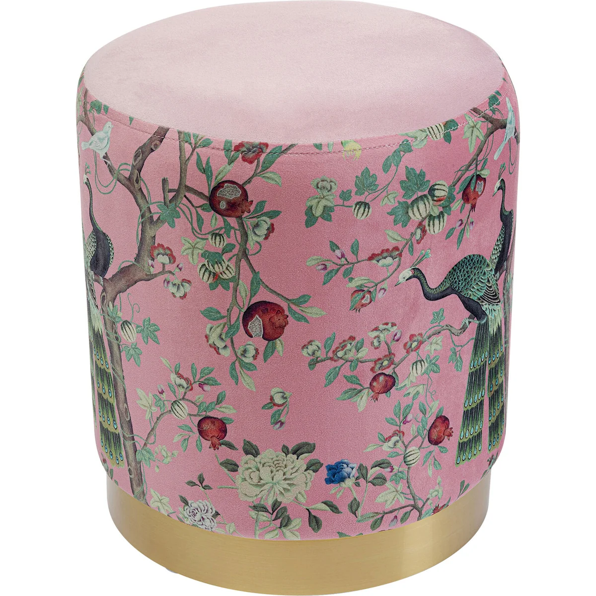 • Round upholstered stool in pink with golden base, 38 x 32 x 32 centimetres (H/W/D) • All-rounder among small pieces of furniture and versatile, as a stool, side table or storage unit in the hallway • Velvety-soft synthetic fiber cover with flowering motifs in pastel green and red • The golden base creates an exciting accent and is made of robust steel • Decorates even the smallest corner with stylish homeliness
