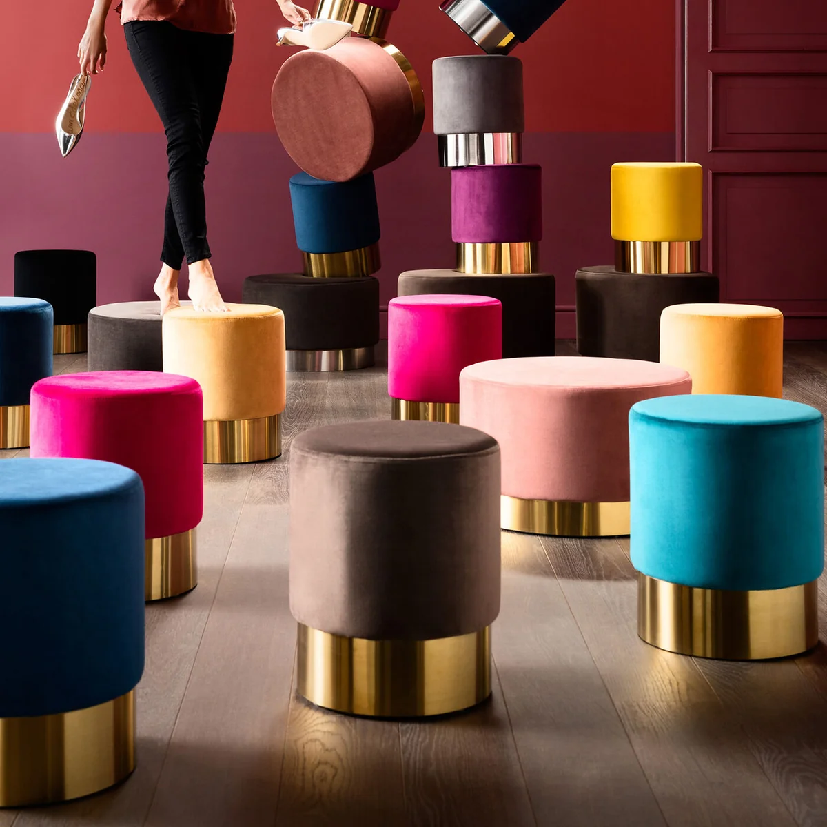 Chic in velvet Irresistible! A stylish footstool is something every home should have - and apart from that, a little bit of glamour has never done anyone any harm. This stylish stool is an absolute must-have for every stylish interior, and an absolute favourite among those who influence interior design. It will transform every room into a salon, giving it an extra portion of chic and glamour. Cherry creates dream combinations and makes a ravishing impression with its tasteful design. The entire seat is elaborately upholstered with soft velvet which gleams softly. The silver-look base creates an elegant contrast and stylishly rounds off the glamorous overall impression. Whether you use it as a seat, a side table, a bedside table or simply for placing things on, it's sure to attract all eyes. Cherry comes in further attractive and fashionable colours.