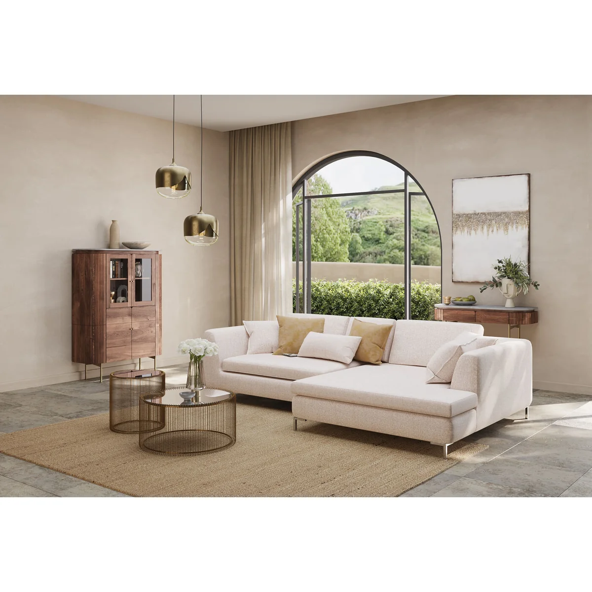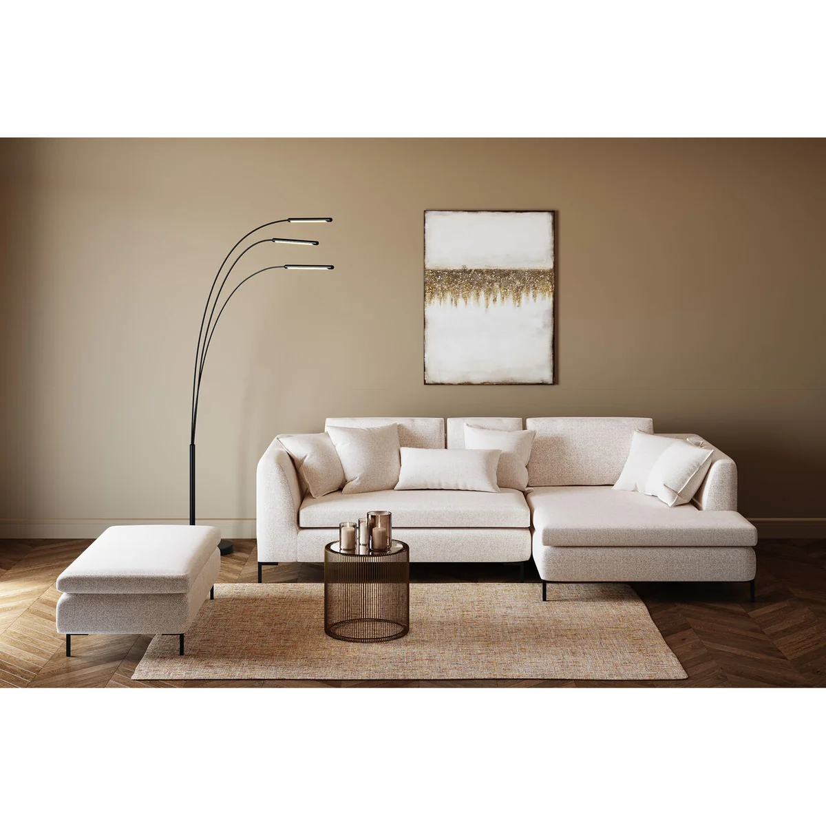A footstool increases the furnishing flair in any room and its uses are diverse. In front of the sofa and couch it functions as a cosy footrest. A pouffe on which drinks and more can be placed on a tray can also be used as a substitute for a coffee table. At the foot of the bed you can place clothes and cushions on it. An upholstered stool also offers practical advantages in the hallway: to sit on while you put your shoes on or as a surface for your bag and the like. With this light-coloured fabric stool you don't need to worry about stains. Thanks to the modern easy-clean feature, even ketchup stains can be removed without leaving any traces.