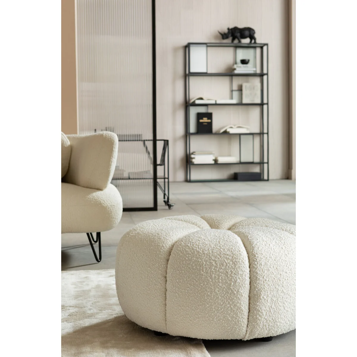 Sink into the plush cushioning and let the Peppo Lounge White Stool transport you to a world of relaxation. Its clean, modern aesthetic makes it a versatile addition to your living room, bedroom, or home office, adding a touch of refined elegance to any space.
