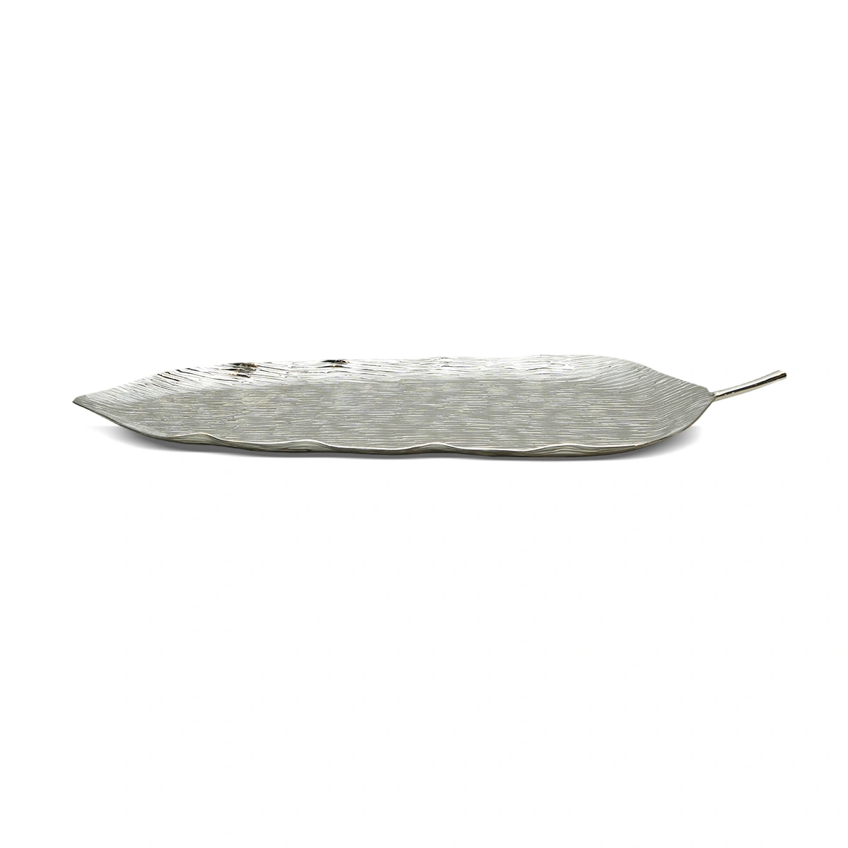 Straw Leaf Platter Large in Silver captures attention with its sweeping silhouette and artisanal design. Whether displayed alone or filled with décor, it lends sophistication and visual flow to modern and classic interiors alike.