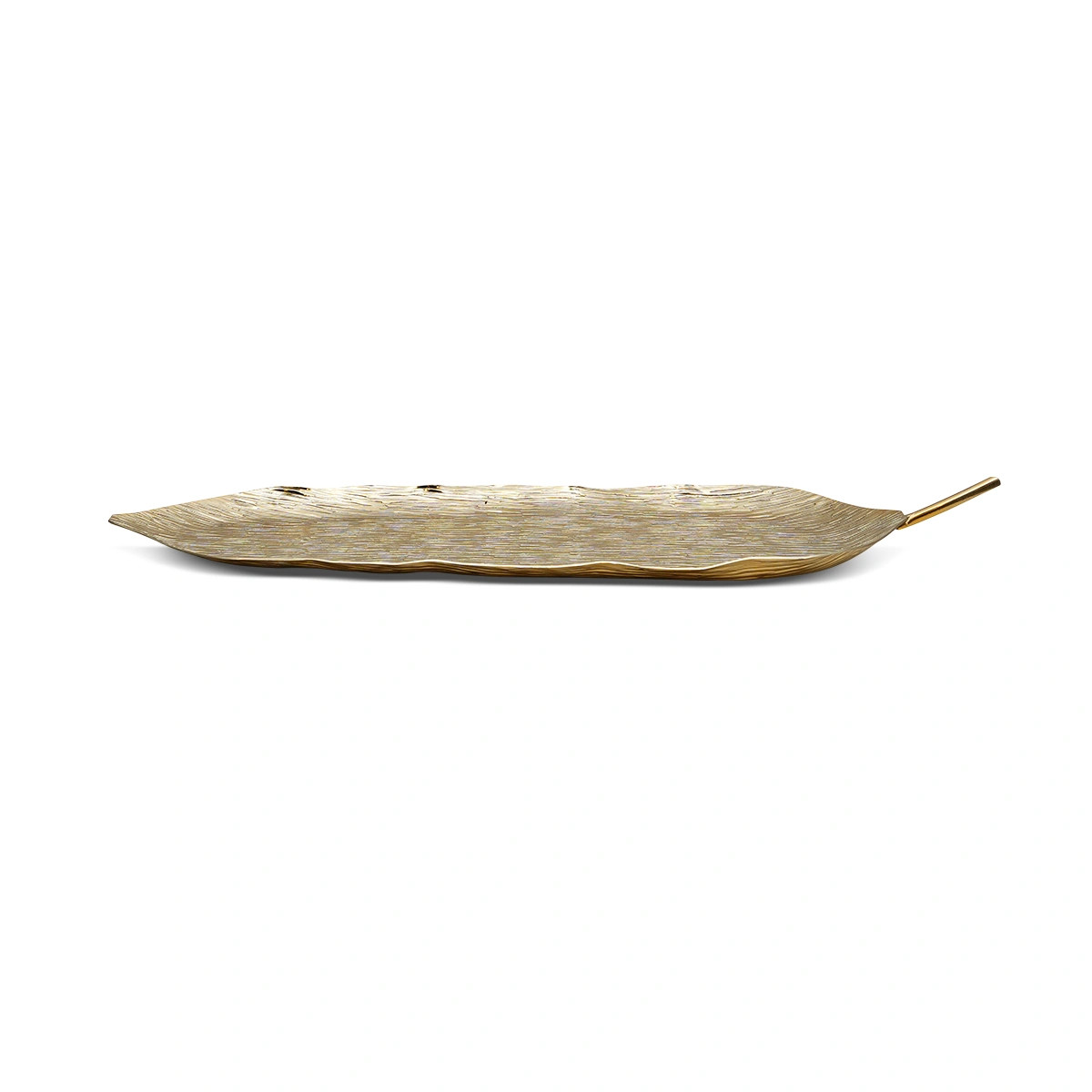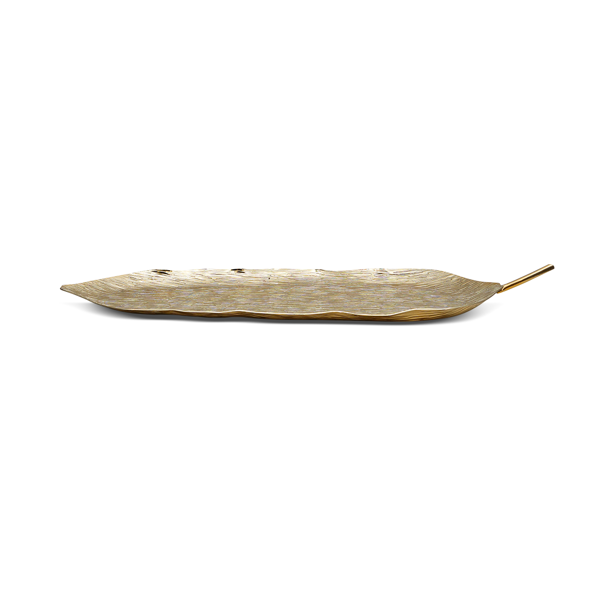 Straw Leaf Platter Small in Bright Gold adds warmth and light to your décor. Its delicate shape and subtle sheen make it a versatile accent for dining tables or sideboards, exuding natural charm with a touch of radiance.