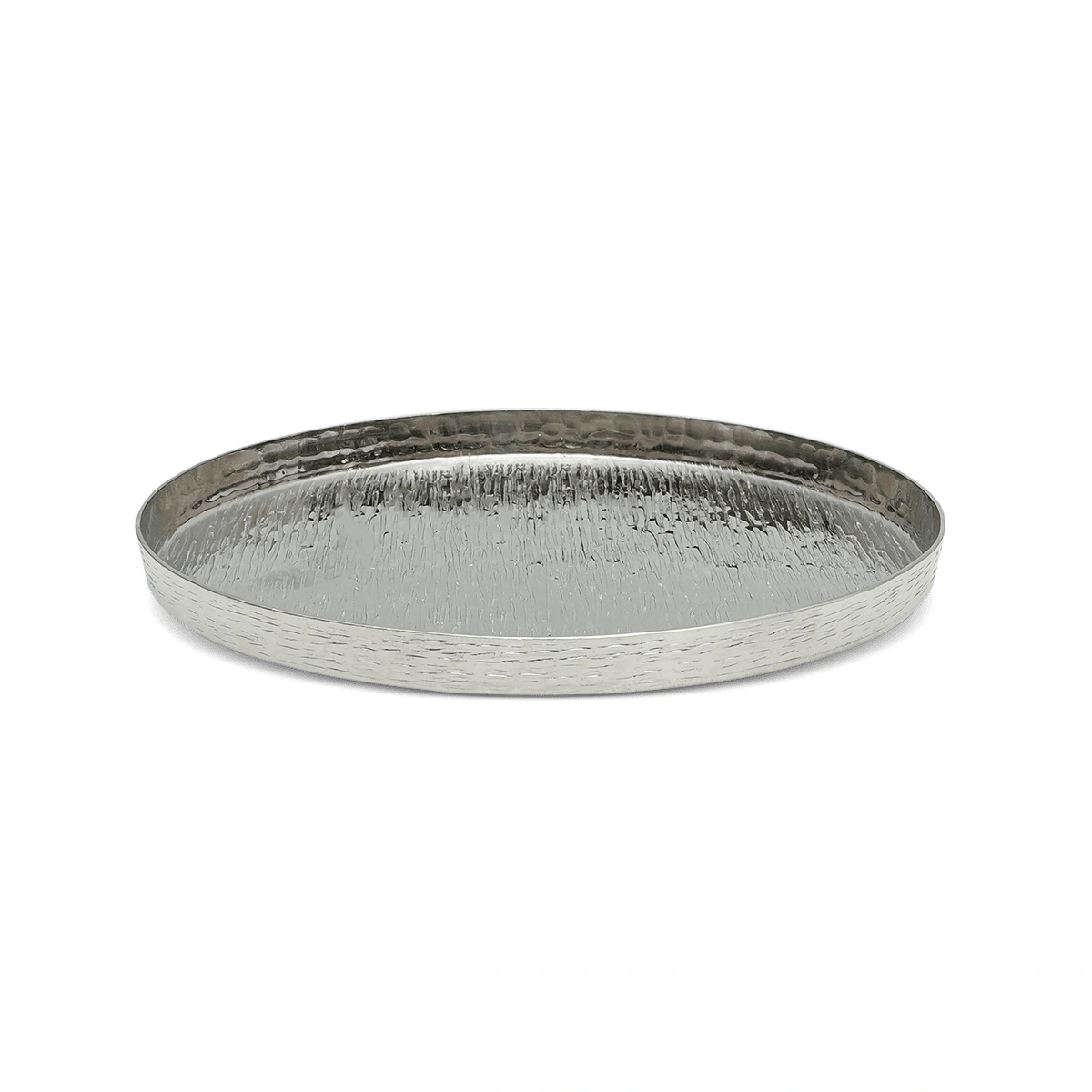Straw Round Collar Plate Large in Silver balances elegance and function effortlessly. Designed to add depth to your tabletop, it serves beautifully for presentation or as a decorative accent.