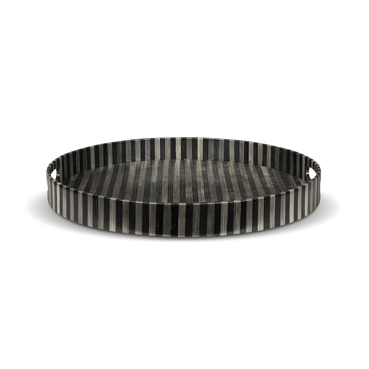 Straw Tray in Silver adds natural artistry to your tabletop. Perfect for serving or displaying décor, its blend of straw and suede textures introduces warmth and refined character to any space.