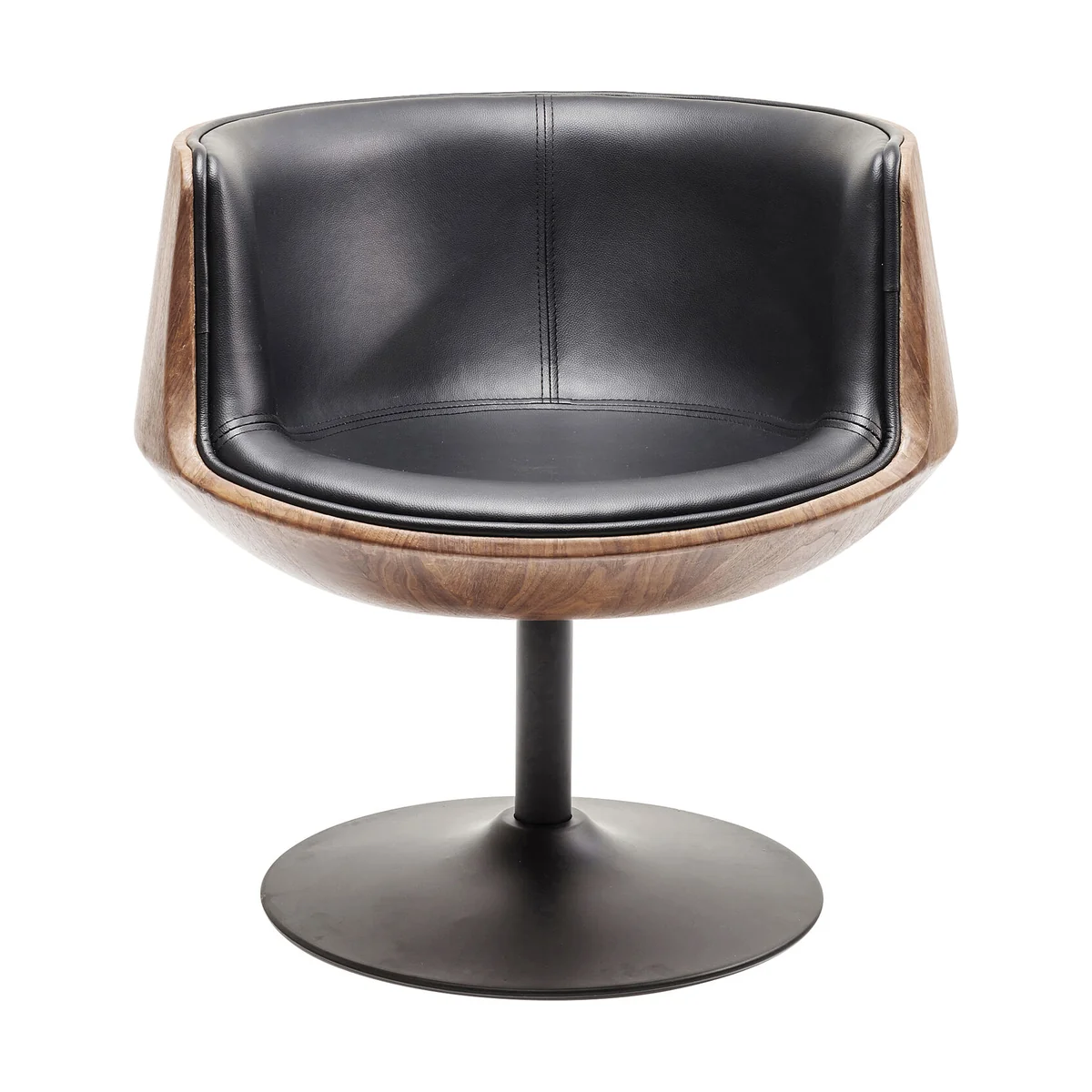 • A casual swivel chair with a charming retro touch. The design is inspired by the style of the 70s and is refined with a fine walnut veneer. No matter how you rotate and swivel this designer chair, it remains a statement of style from all sides