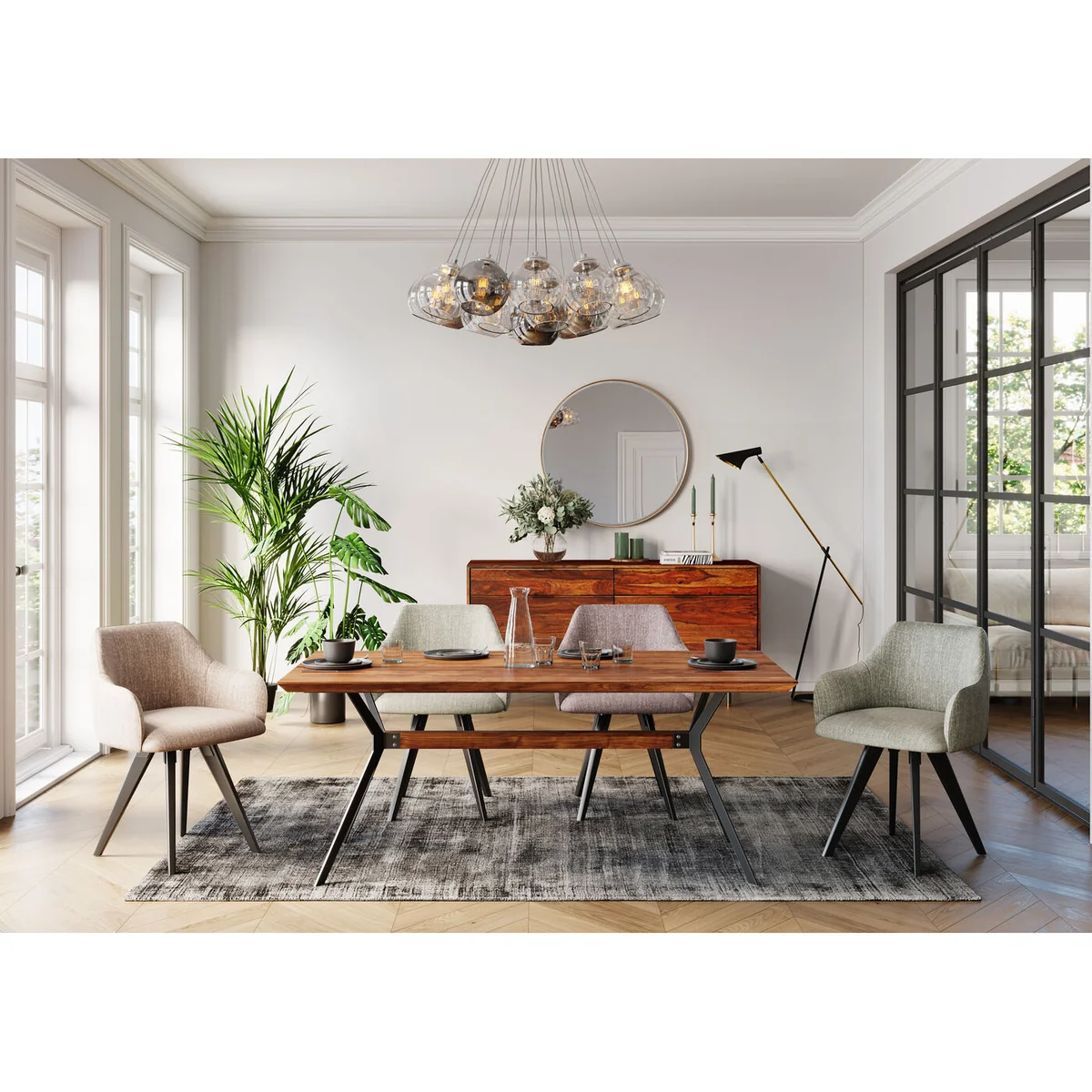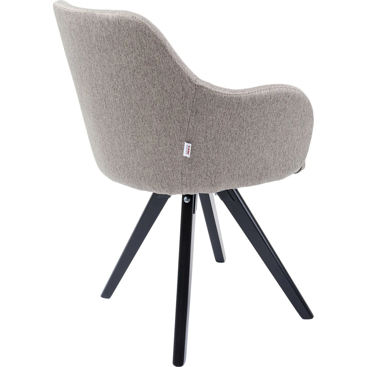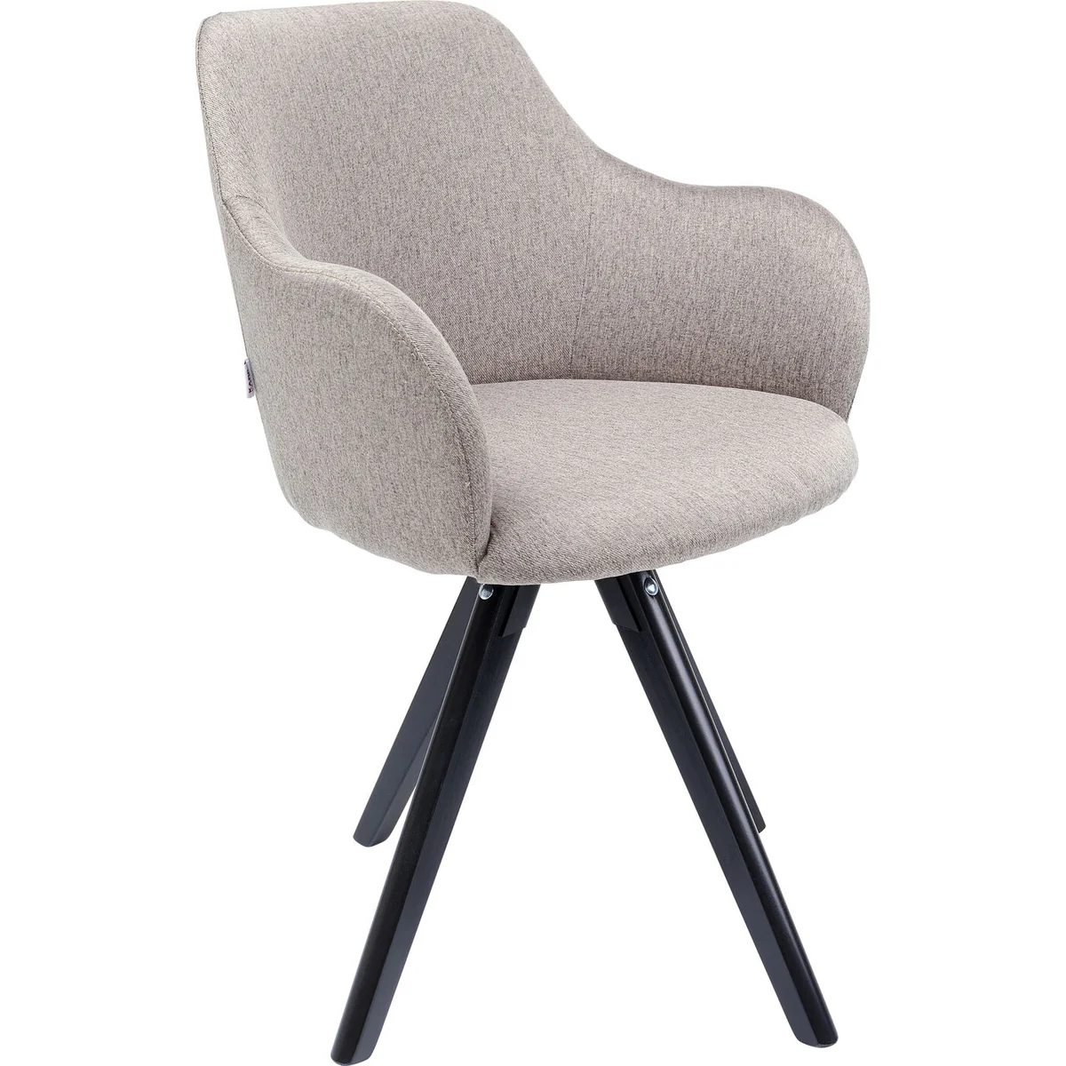 ● A modern classic among upholstered chairs with a mottled textured cover in taupe, a warm colour in geyish brown ● Its swivel function makes this armchair ideal for sitting at the dining table or desk ● Allround upholstery, the continuous arm and backrest and the shell shape ensure maximum sitting comfort with this swivel chair ● A stylish designer chair in a neutral, easily combinable colour for the living room, bedroom and study ● High-quality, stable legs made of solid beech wood, painted black