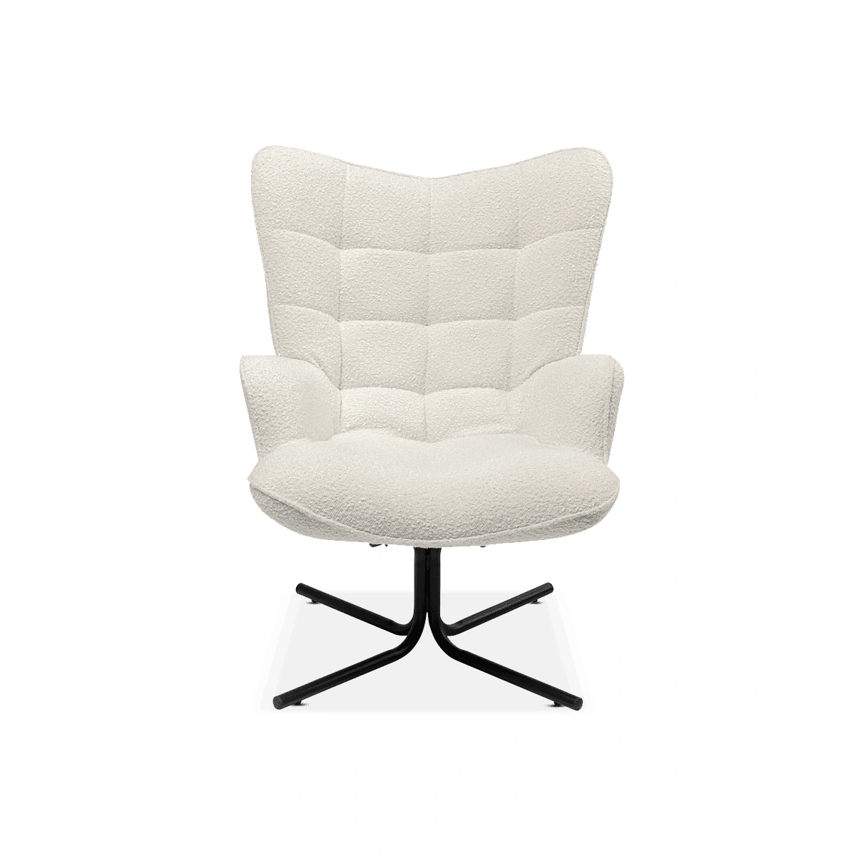 The Oscar Swivel Armchair features soft upholstery in cream, paired with a rounded shape and full swivel base. It adds a textural element to your space while offering supportive, all-around comfort