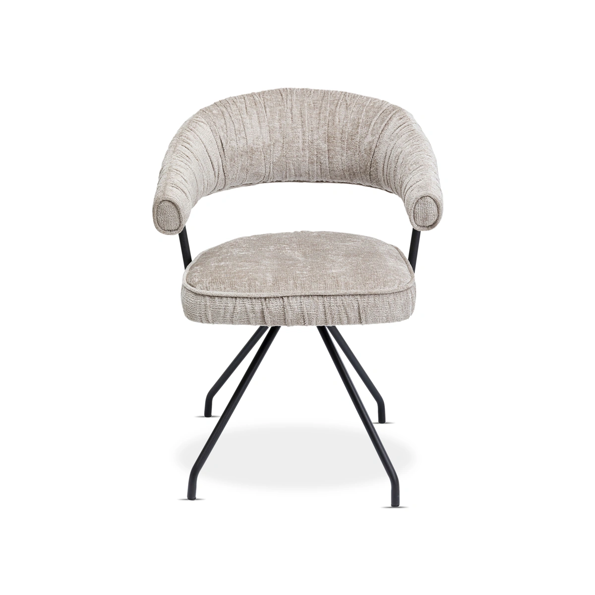 This swivel chair combines comfort and aesthetics to perfection. Thanks to its ergonomic design, it offers a pleasant sitting position. The high-quality upholstery ensures comfortable seating, whether at the dining table, the dressing table or the desk at home. Clearly structured lines on the frame and a sophisticated colour scheme in silvery grey make the chair a timeless gem for any home. In addition, the chair is extremely robust and durable - the ideal addition to the dining table.