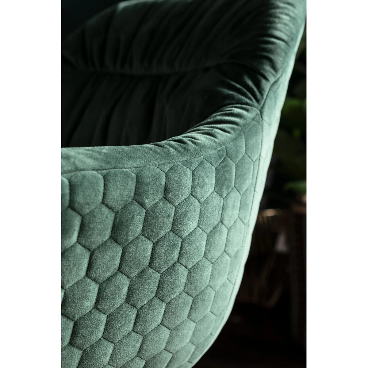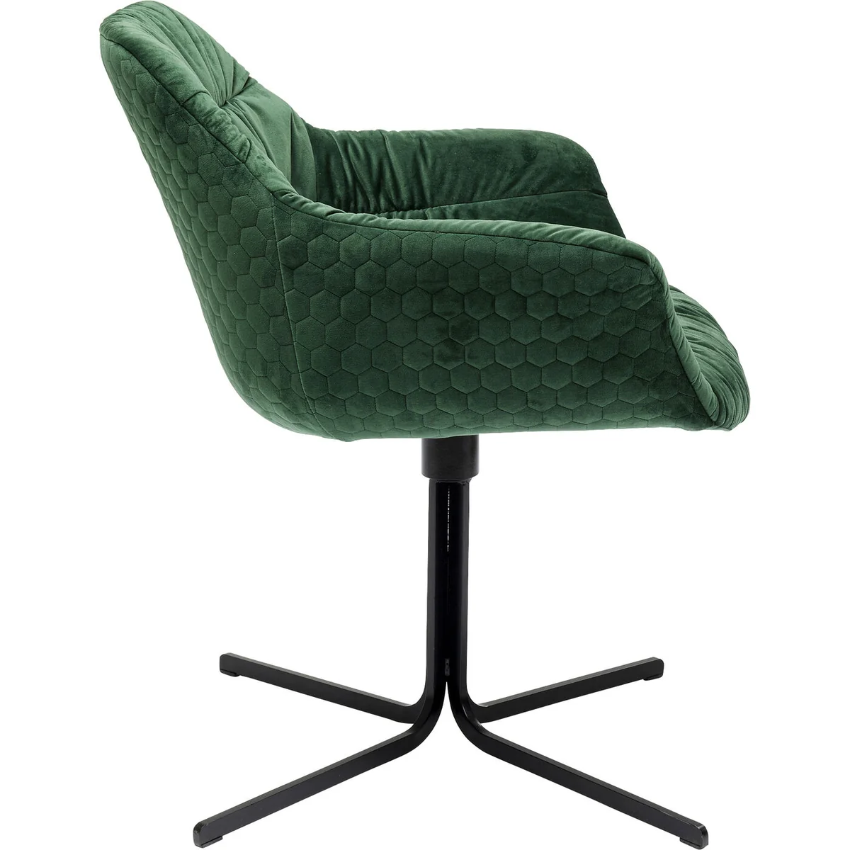 ● Voluminously upholstered swivel chair with armrests, velvety green cover and a sturdy black star-shaped base made of steel ● Will play the role of a small armchair in the living room, and also serves as an office chair ● The crumpled look of the dark-green upholstery and the horizontal seams make this swivel chair look really laid-back ● The shell shape and continuous arm and backrest guarantee luxurious all-round seating comfort ● For all those who prefer to gather around the dining table: Colmar is probably the most comfortable dining room chair far and wide
