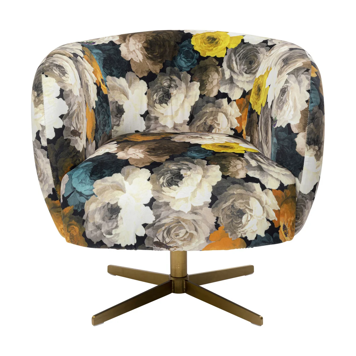 The Peony Swivel Chair in yellow multicolor is a vibrant addition to any living space. Its lively hues and comfortable design make it a perfect choice for modern households.