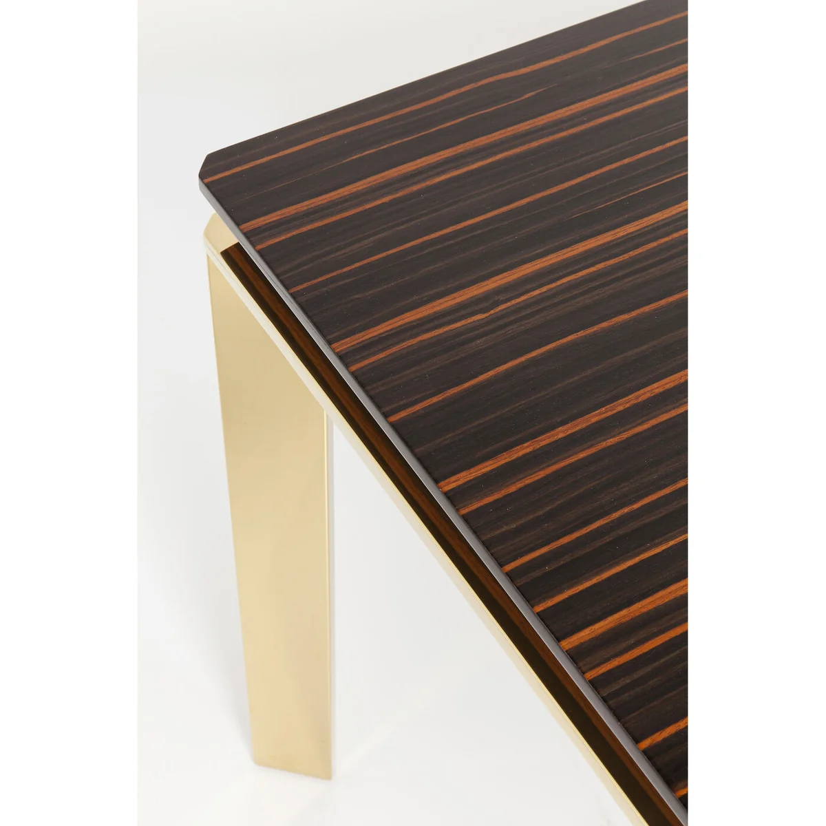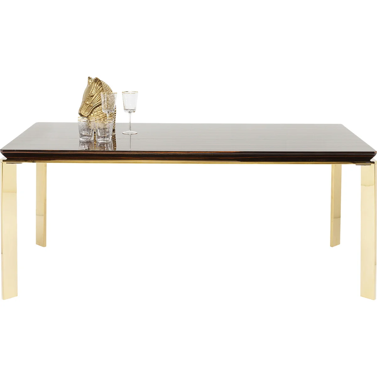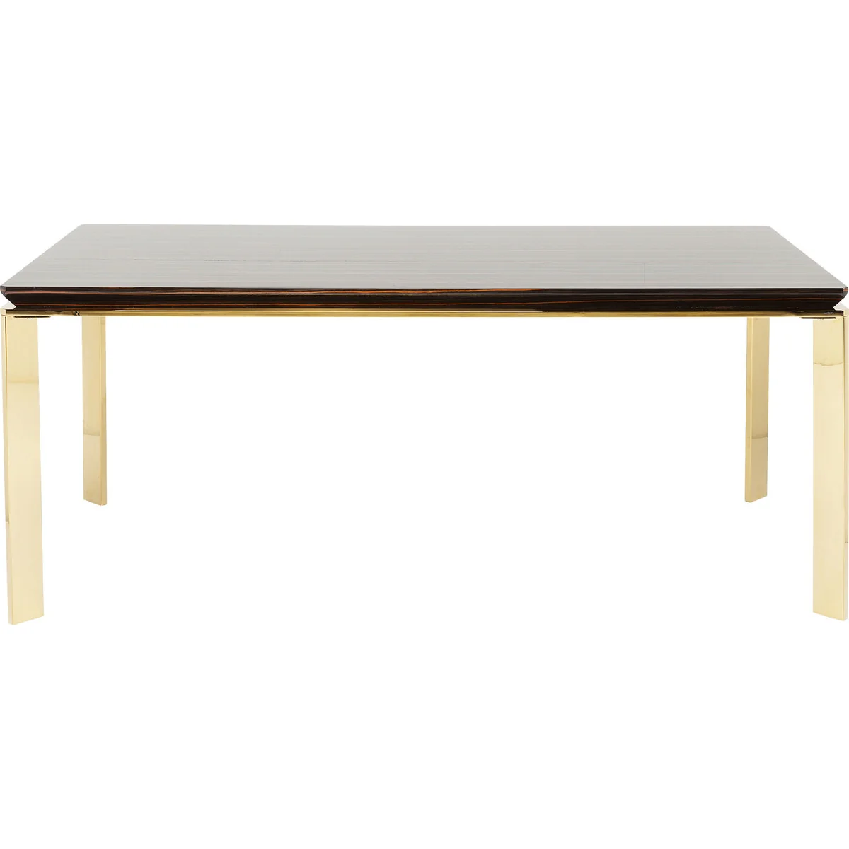 Who needs golden cutlery when the table itself stands on glittering legs?! Boston doesn't just look good as a dining table, but also as a desk. Characteristic of the Boston series are its graphic lines, brass-coloured details and the charming grain of the eneer in ebony-look. Other versions available.