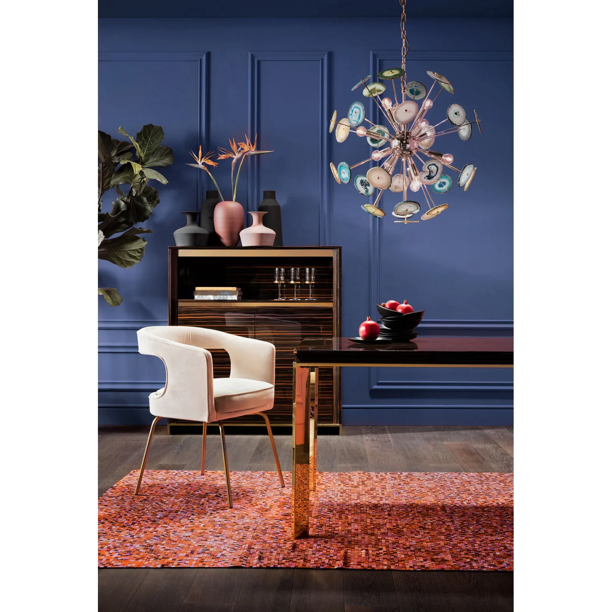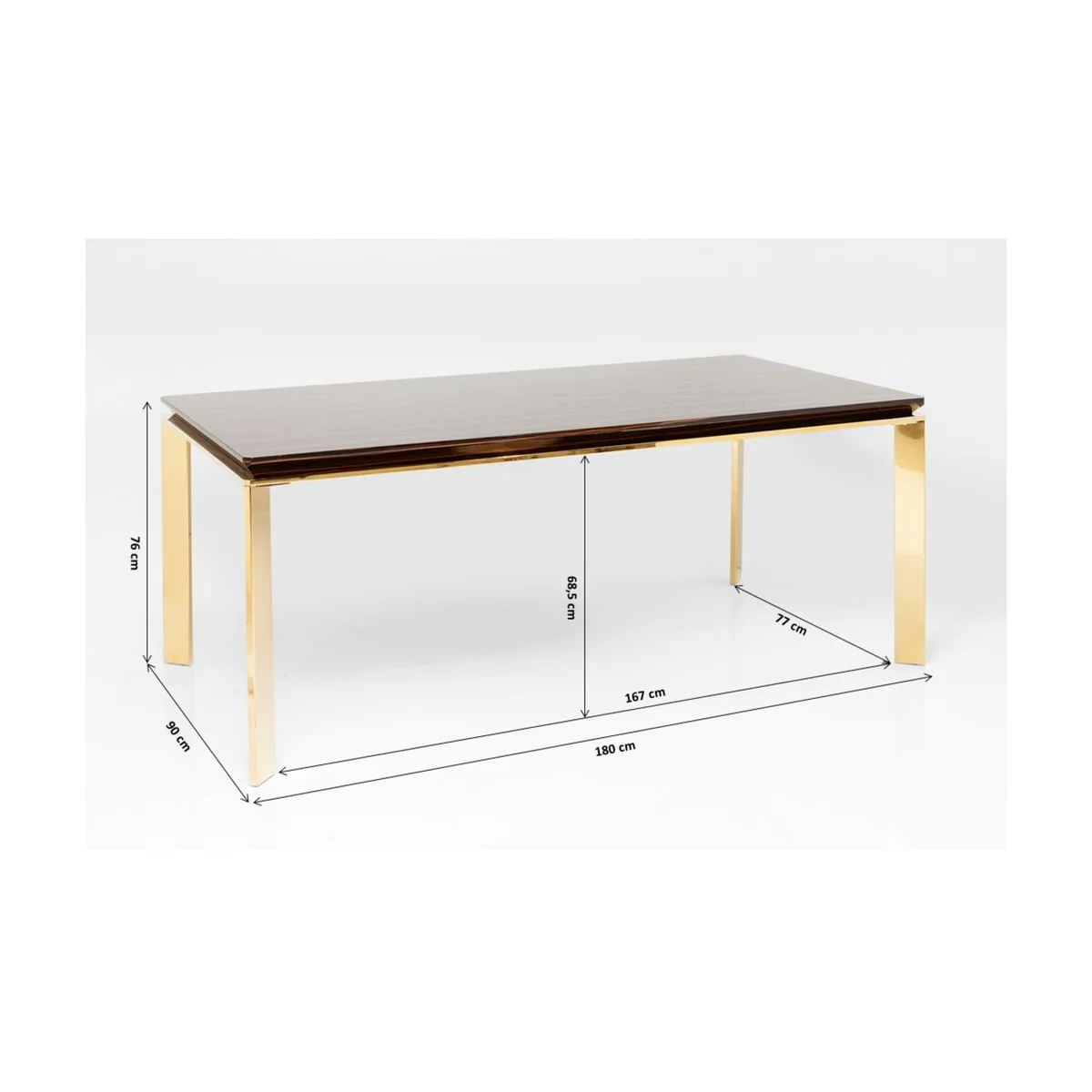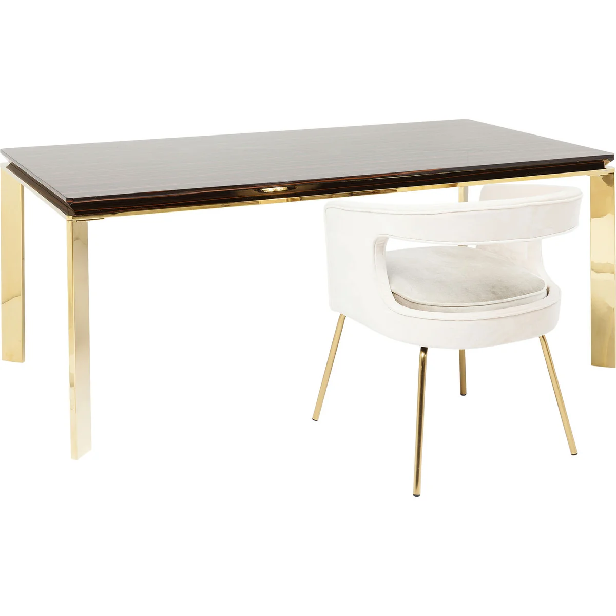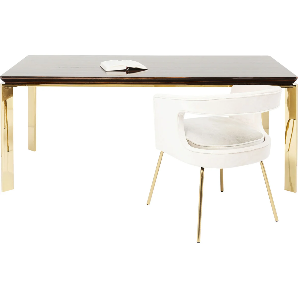Who needs golden cutlery when the table itself stands on glittering legs?! Boston doesn't just look good as a dining table, but also as a desk. Characteristic of the Boston series are its graphic lines, brass-coloured details and the charming grain of the eneer in ebony-look. Other versions available.