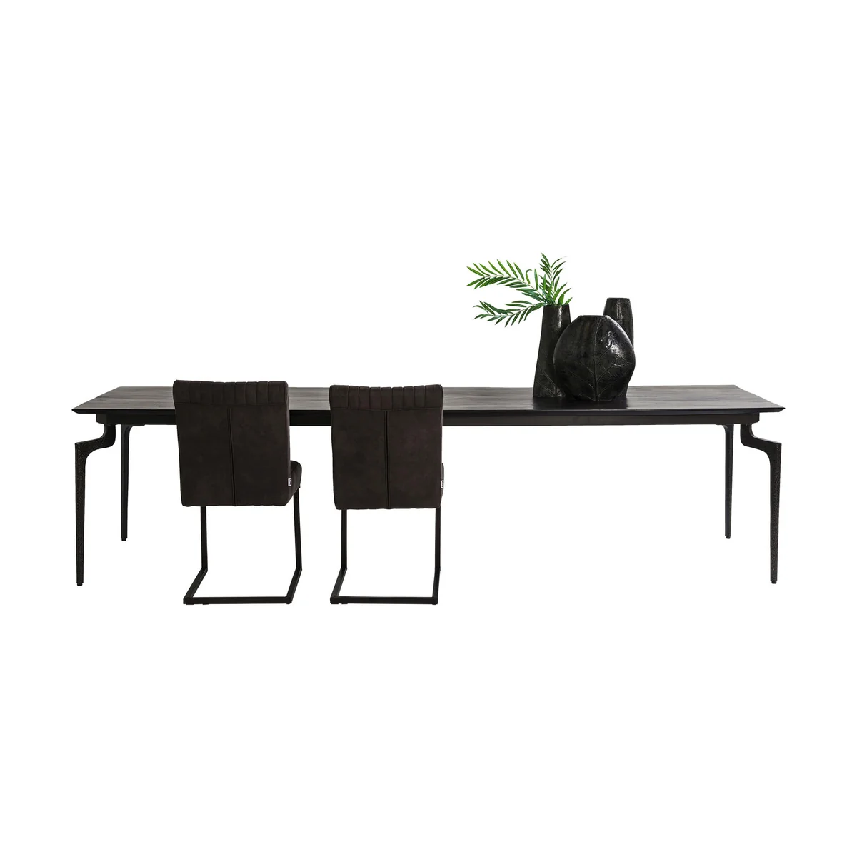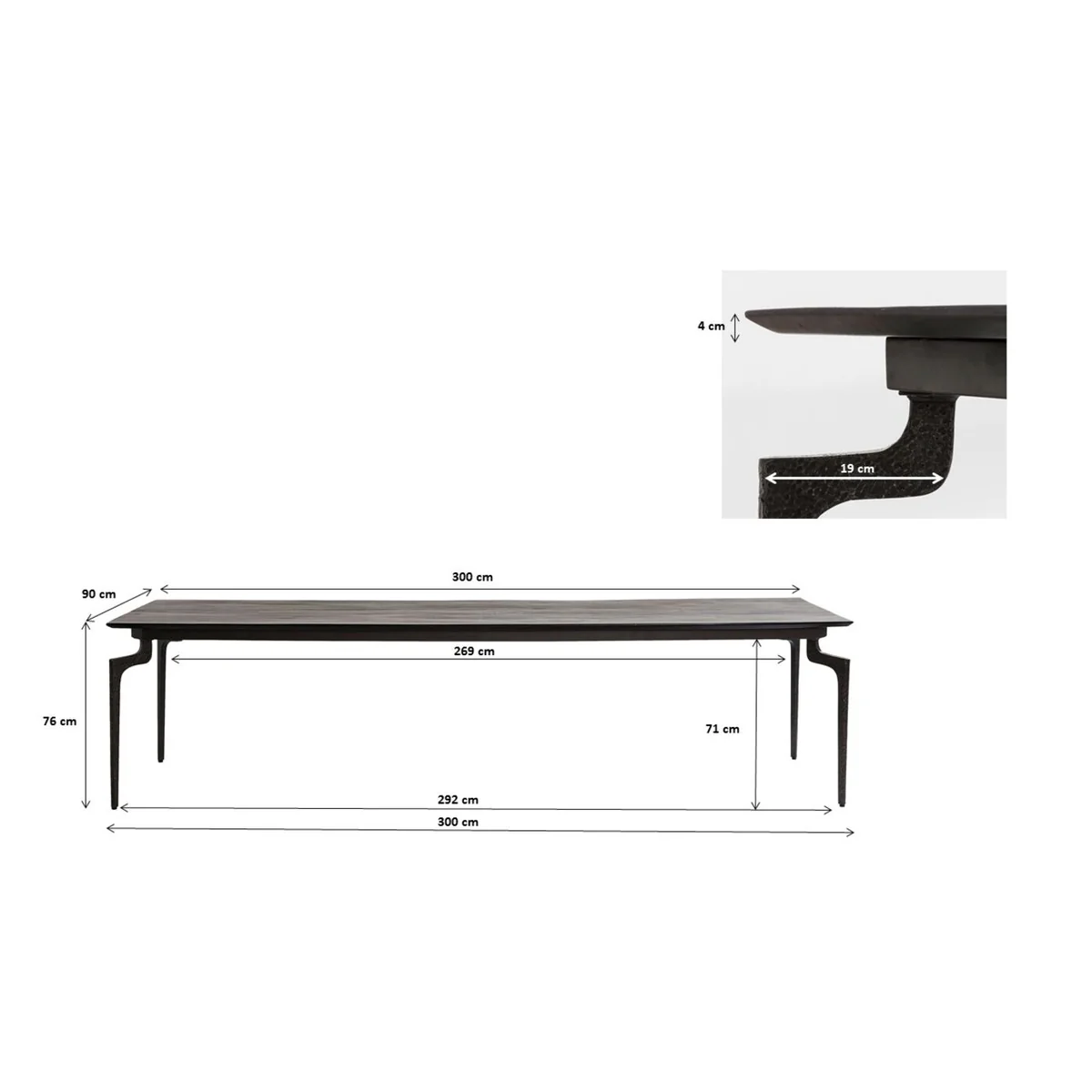 The Bug Dining Table in black solid wood brings a modern touch to your dining space with its distinctive hammered steel legs and expansive 300x90cm surface. This rectangular dining table offers a premium centrepiece for contemporary dining rooms or open kitchens, accommodating family gatherings or stylish dinner parties with ease.