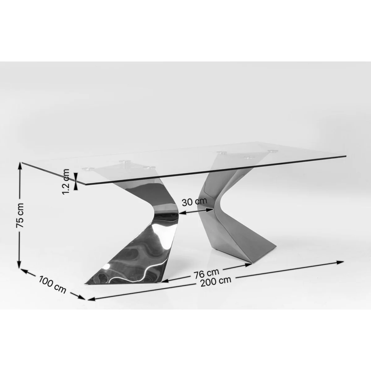 Crafted with a 13 mm toughened safety glass tabletop, the Gloria Dining Table features two sculptural gold-colored legs that exude Hollywood-inspired sophistication. Its 200x100 cm size comfortably seats 6–8 guests, making it ideal for both family gatherings and upscale entertaining. The unique combination of clear glass and gold creates a stunning visual impact.