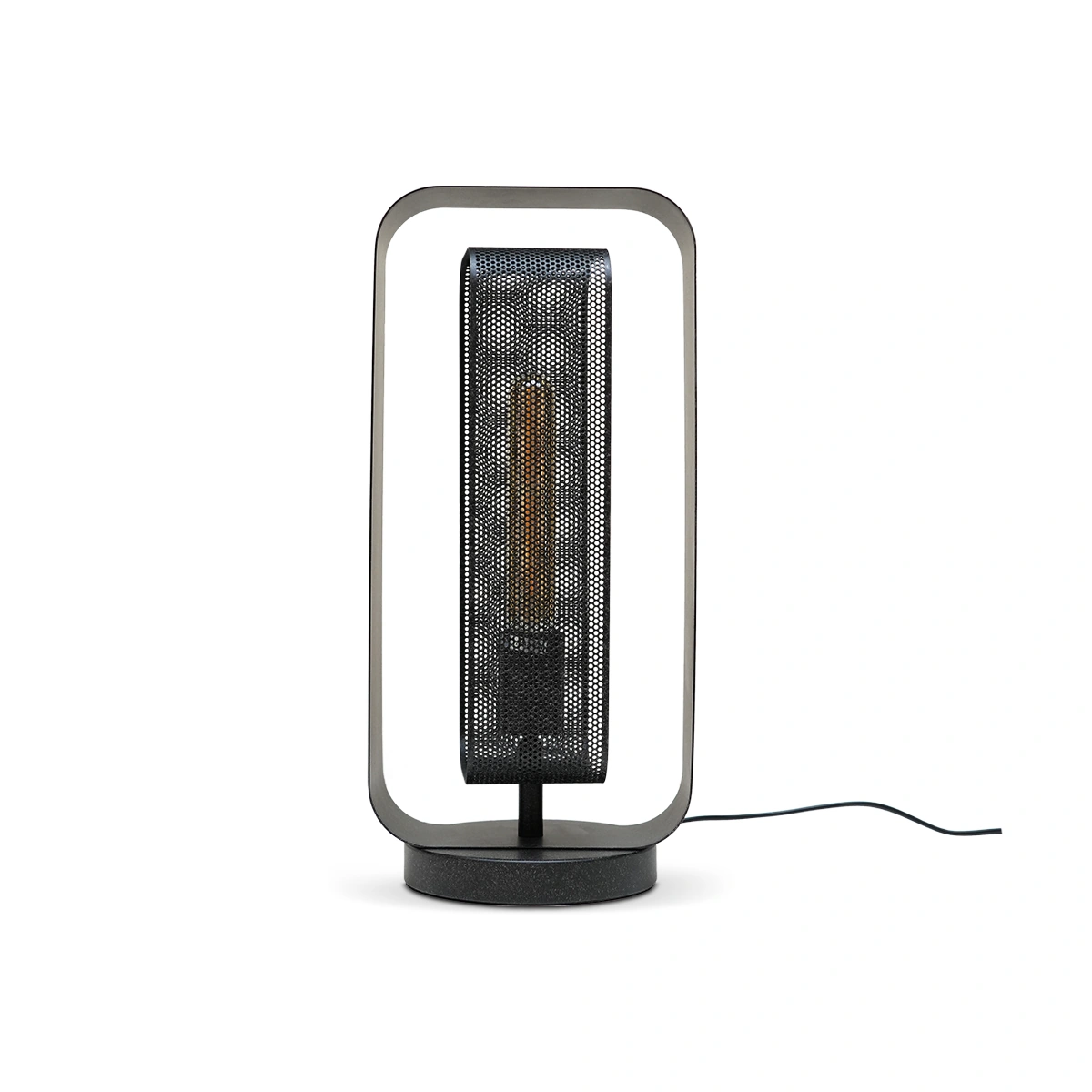 Featuring a mesh shade and a rotating arm, this black table lamp offers an industrial vibe with a touch of modern flair. Ideal for workspaces or urban-inspired interiors, its adjustable design ensures both style and function.