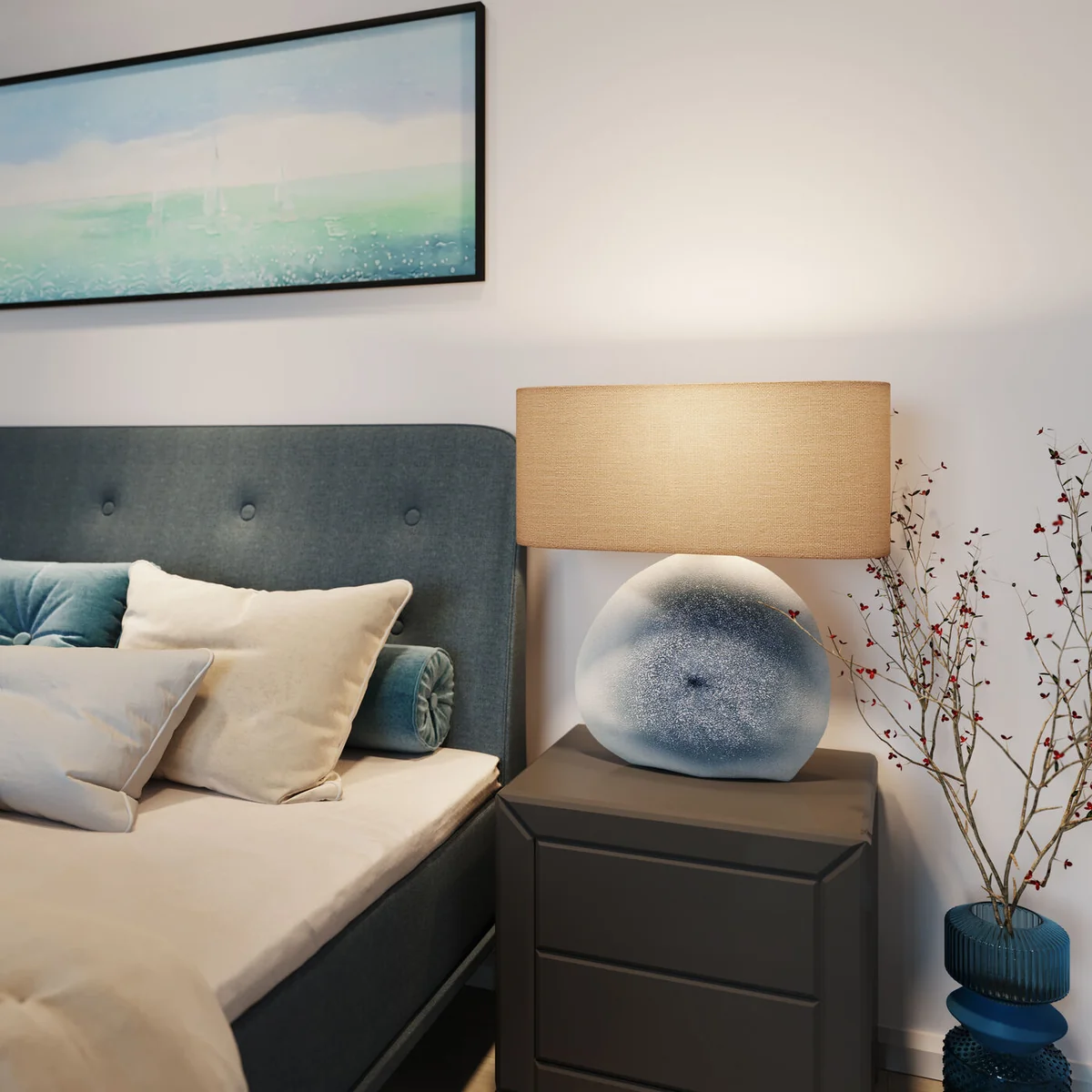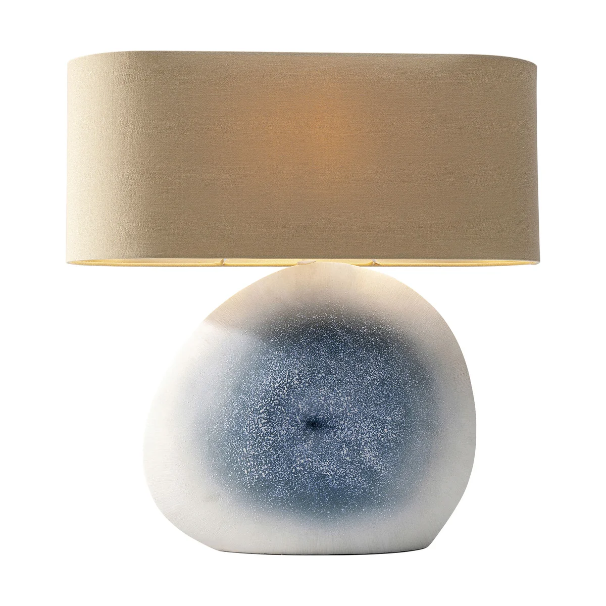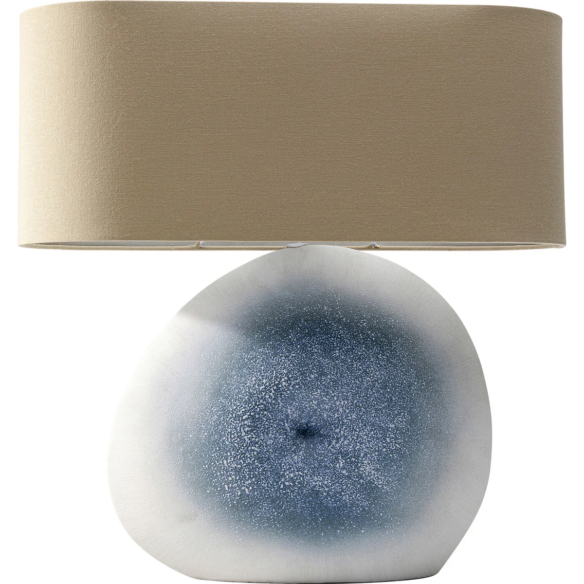 - Handmade lamp base from real ceramics - You are purchasing a unique piece, slight deviations from the illustration possible - Quite natural: the shade made of natural coloured linen - With a 57 cm height also well suited for large rooms - Small depth of 19 cm with oval shade, ideal for narrow windowsills and shelves, or on the bedside table