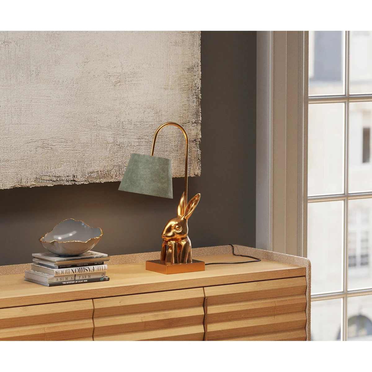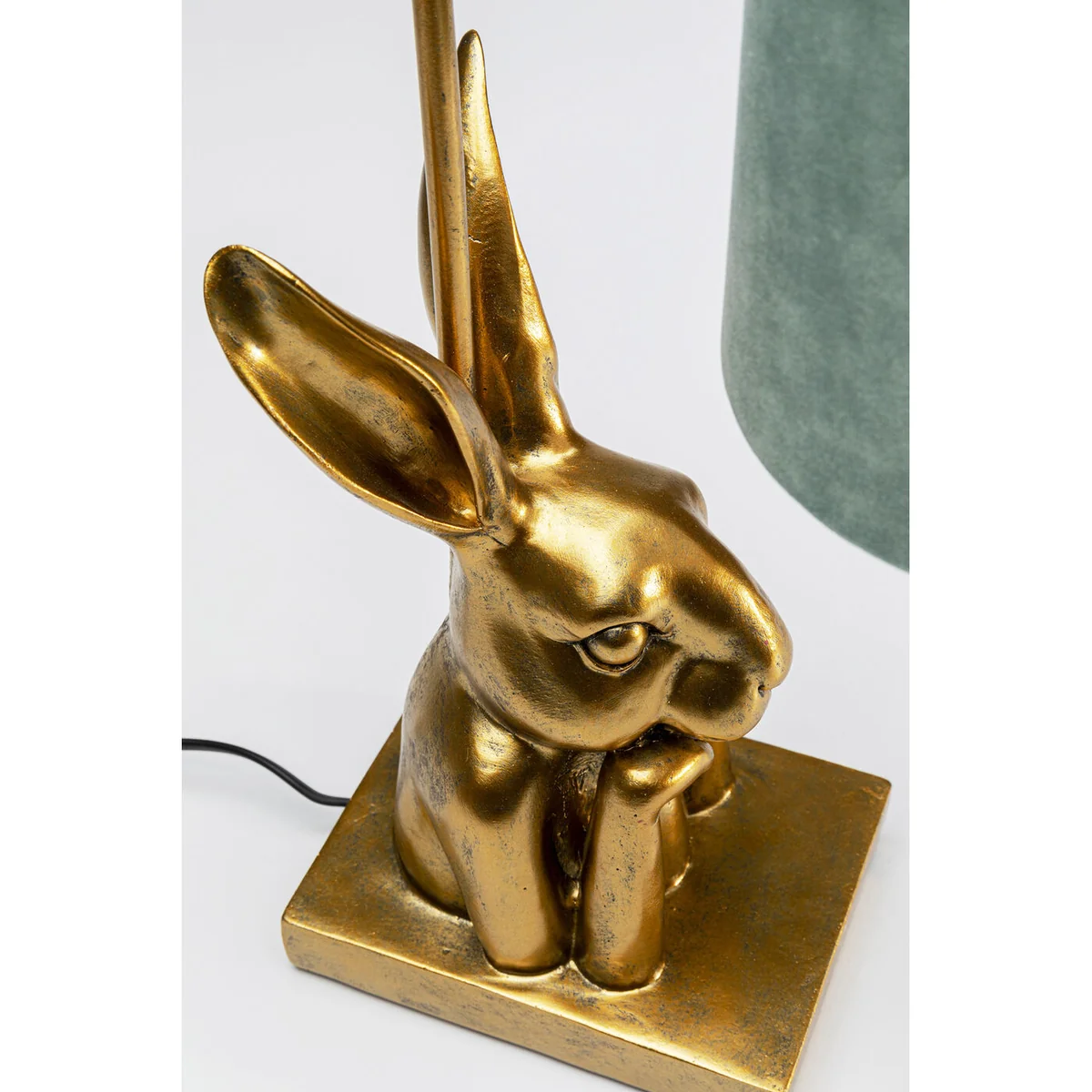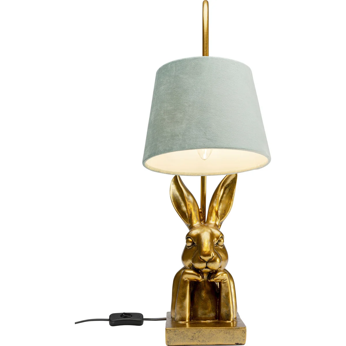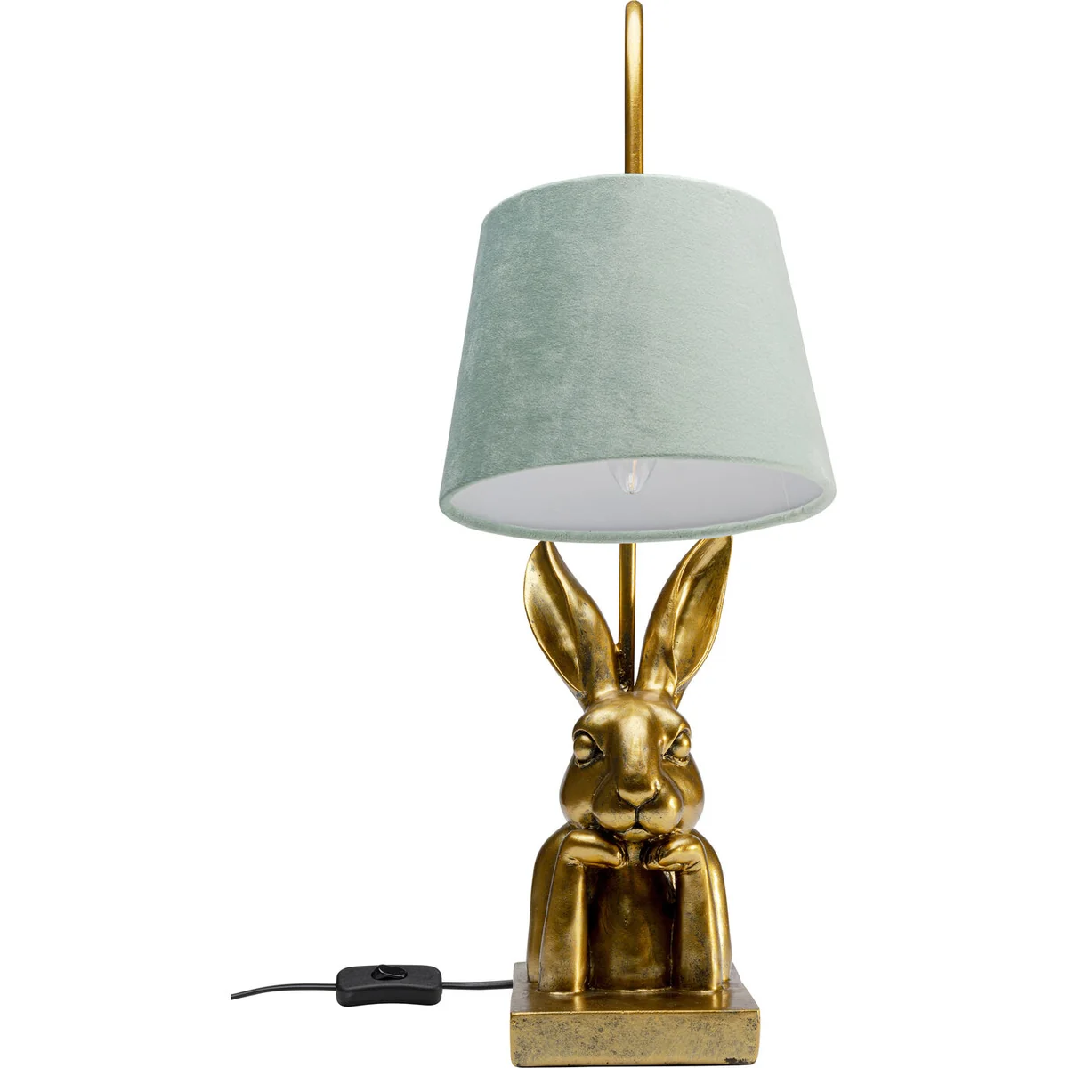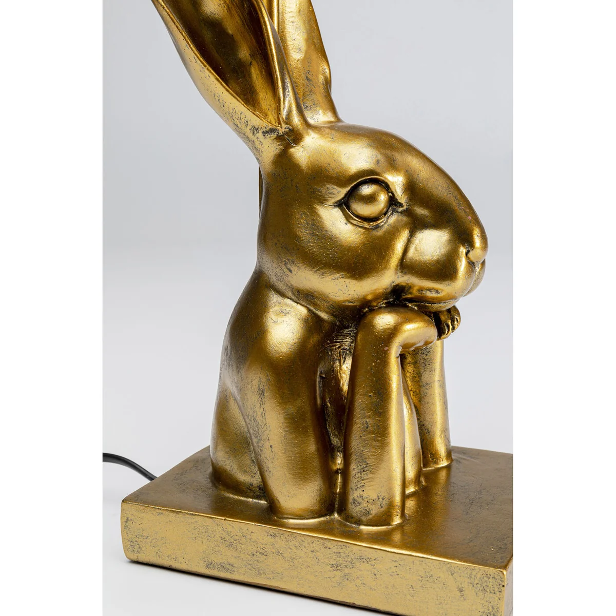 - Golden table lamp featuring a hare with a cotton lampshade, 56.6 x 19 x 28 cm (H/W/D) - The March hare as a lamp base made of polyresin will add charming flair to your home - As an original LED table lamp it will look good in any style of furnishing, from country house to modern - The golden long-eared character will look good as a reading lamp on the nightstand in the bedroom or guest room - 230 V, socket E14, number of bulbs 1, max. 5 W, bulb not included
