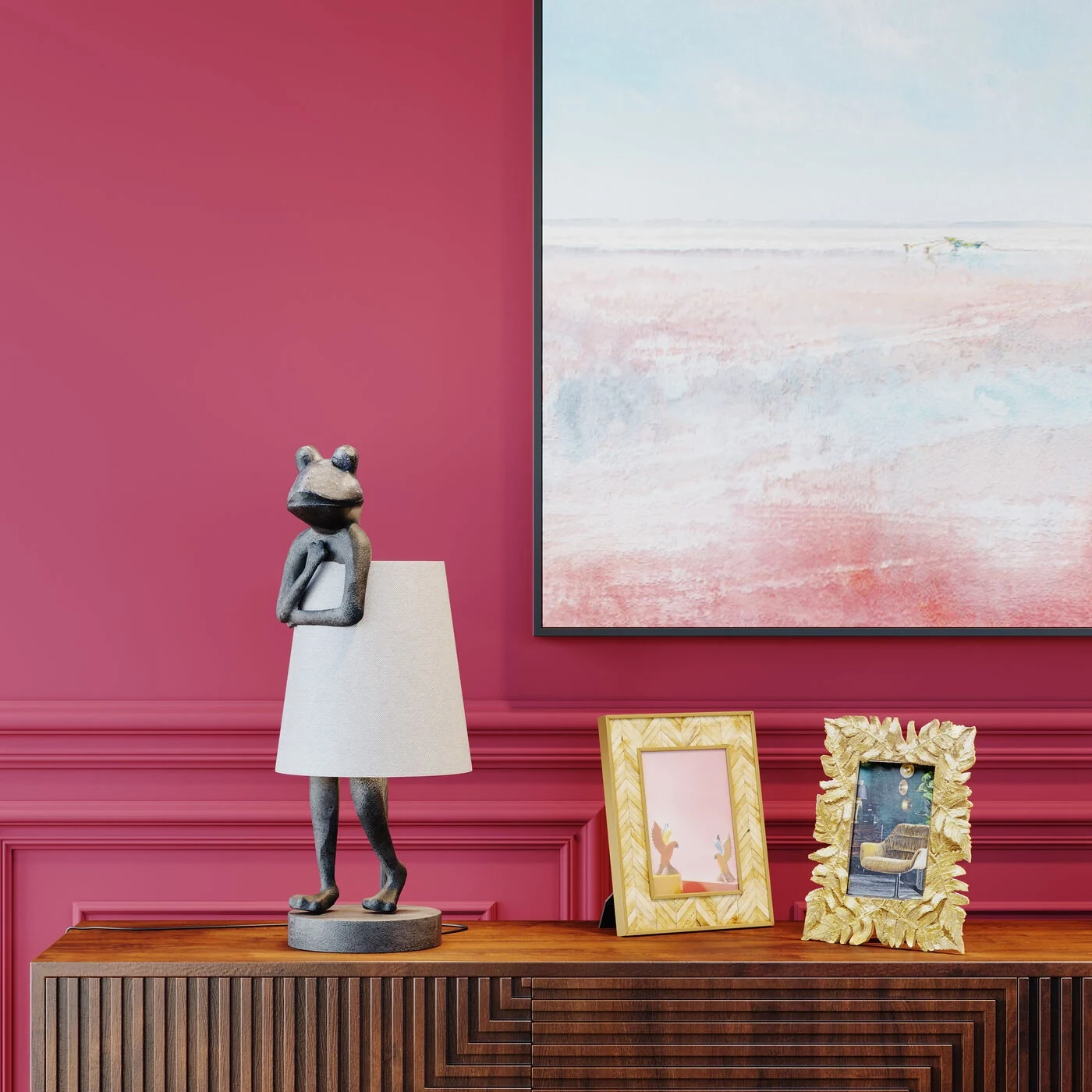 Benefit from the charming appeal this frog themed table lamp brings to your home. Its playful design can spark conversations and its soothing grey color seamlessly blends with any decor style. Additionally, its robust polyresin body ensures it can withstand the test of time.