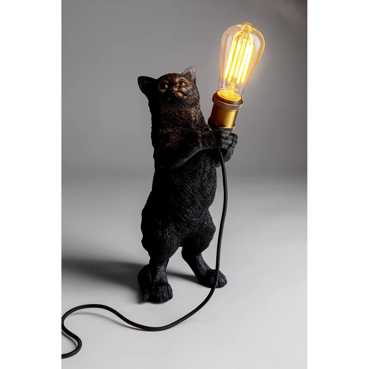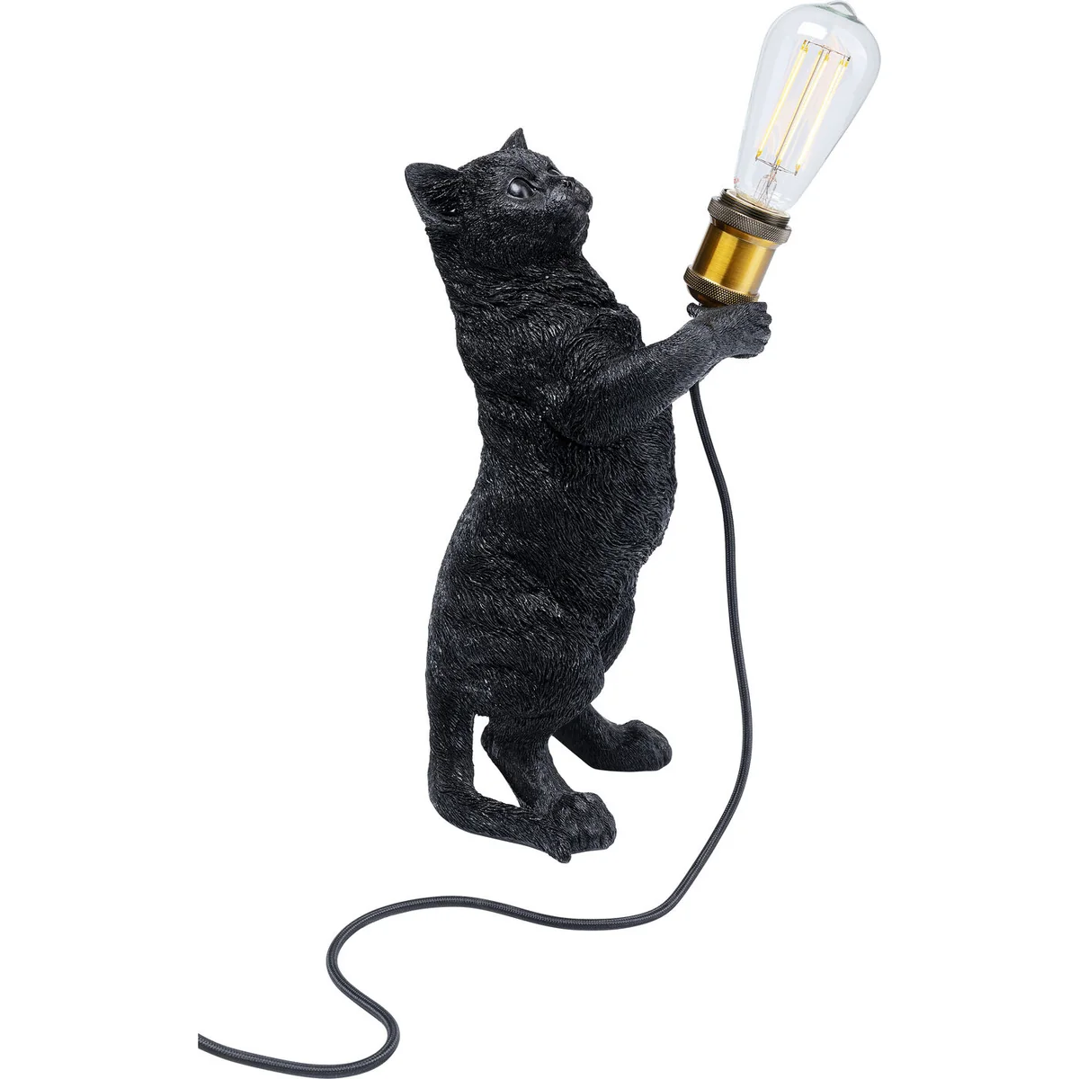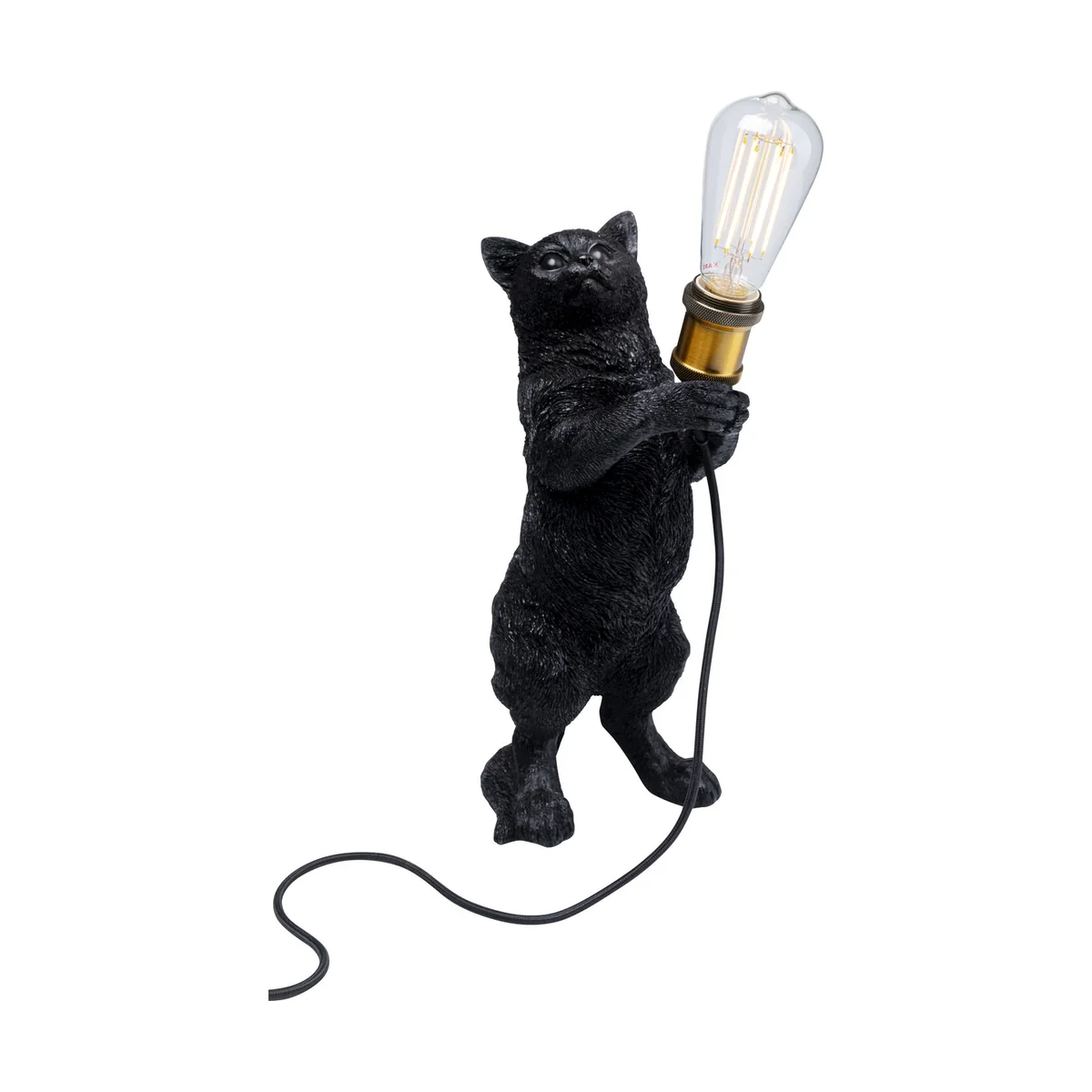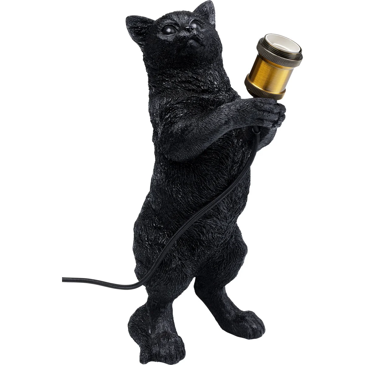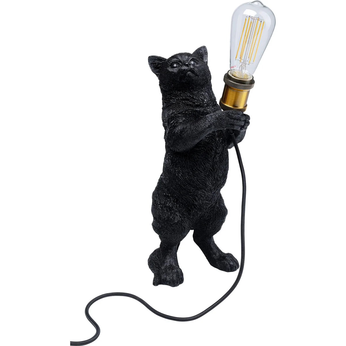 - A stylish table lamp in black without a shade - The cat makes this lamp a real head-turner - Illuminated object with show effect from the living room to the bedroom - The housing is finished in brass - For a 1x E27 bulb, max. 40 Watt