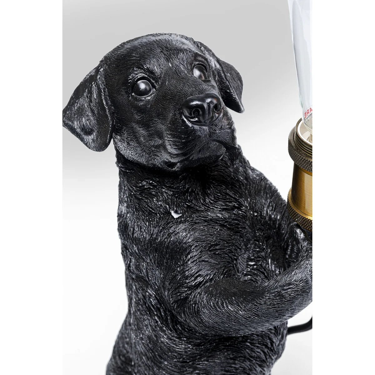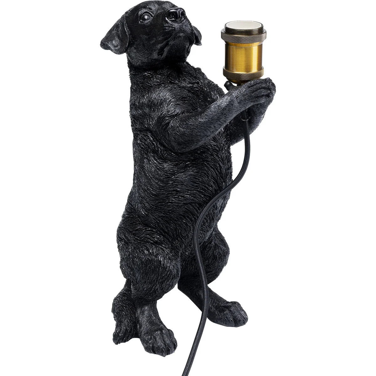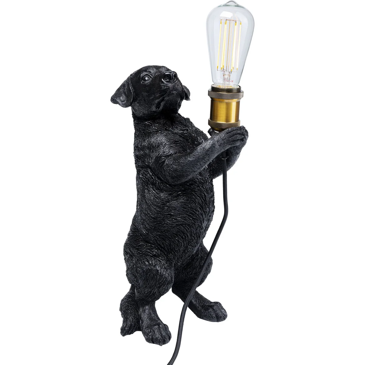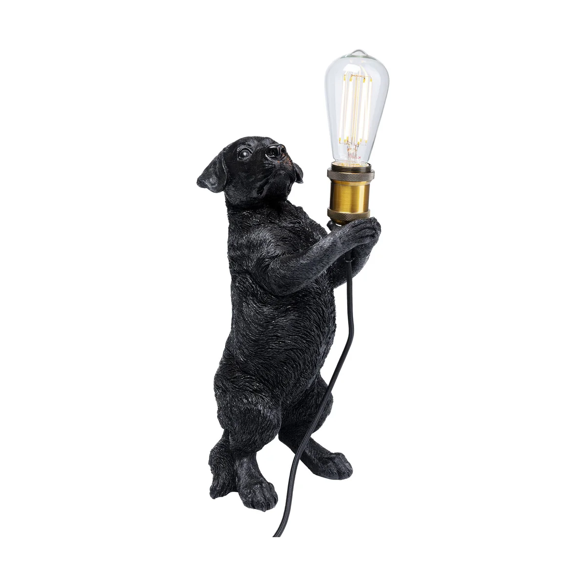 - Gone to the dogs: a detailed table lamp in black with a cute four-legged friend as the base - A witty, humorous and creative lighting source and a great gift idea for pet lovers - A hairy lighting fixture for dog lovers on the bedside table, in the hallway or on the living room console table