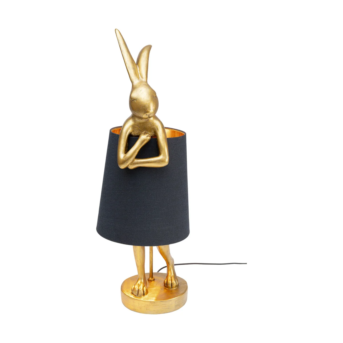 Do you enjoy furnishing your home in an unusual way? This heart-warming bunny lamp in gold and black is anything but ordinary and easily enhances any room. The new favourite piece on the sideboard or bedside table radiates classy elegance as a sculptural eye-catcher during the day and soft, indirect feel-good light in the evening. In spite of its impressive size of approx. 68 cm, the radiant animal figure remains stable at all times. With Animal Rabbit you can create lighting effects that will never get boring: The lamp is available in many other versions from the KARE Shop.