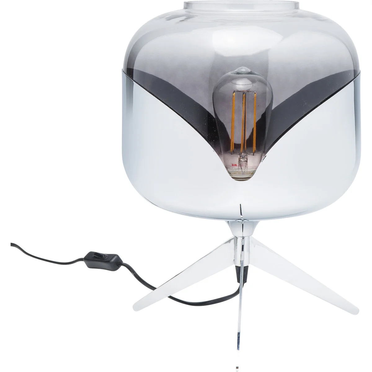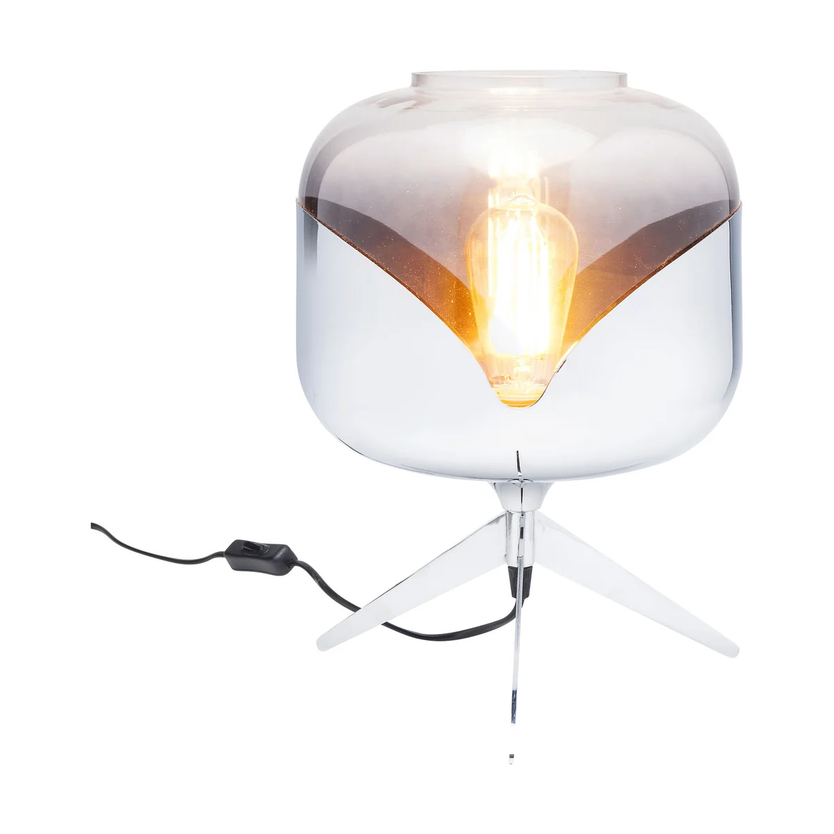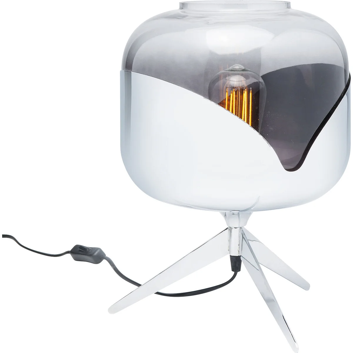 - Decorative object: table lamp in retro-style with chrome details and elegantly shaped glass body. - Looks cool and at the same time provides comfort and feel-good light: sounds like the perfect mixture for a table lamp! - Great eye-catcher on a chest of drawers, which also radiates a soft light through the chrome shade. - This one stands stylishly on three legs! The tripod style is a trendy design element. - For design lovers: There are many variants of matching table and floor lamps available in the Goblet series.