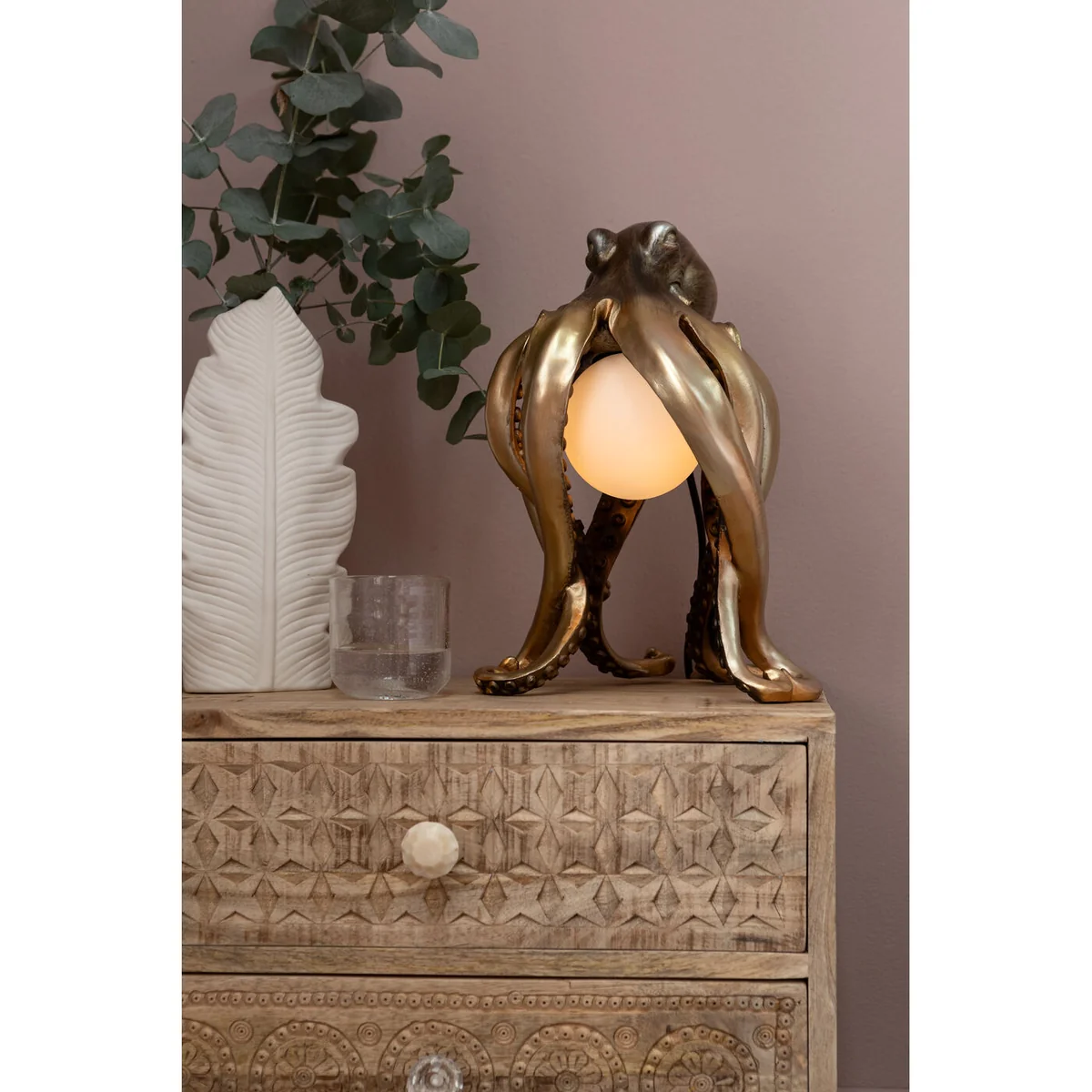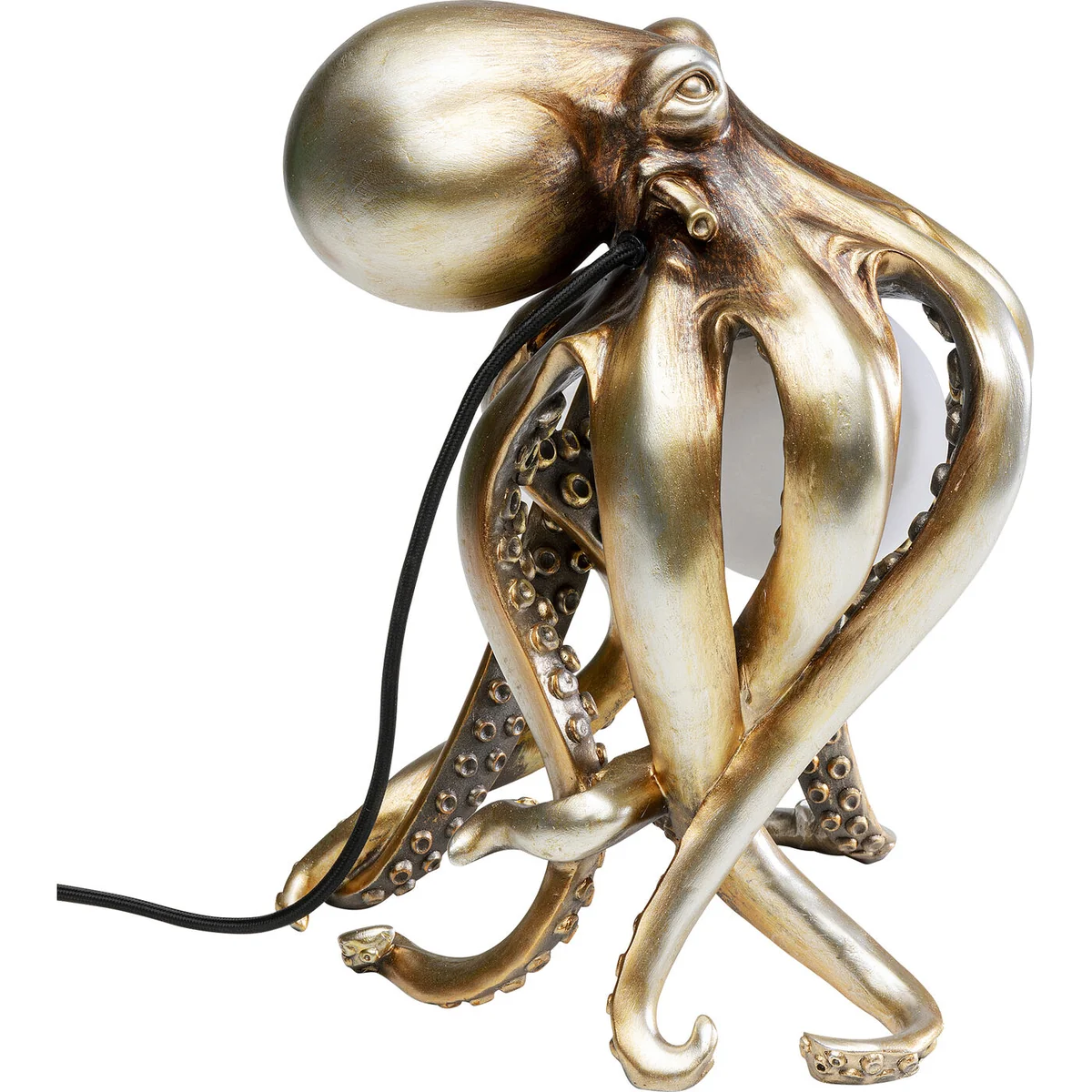 Experience the benefits of this intriguing lamp. Not only does it provide a soft and ambient light, but it also serves as a conversation starter, thanks to its unique design. Bring the mysteries of the deep sea into your home with this Golden Octopus Table Lamp.
