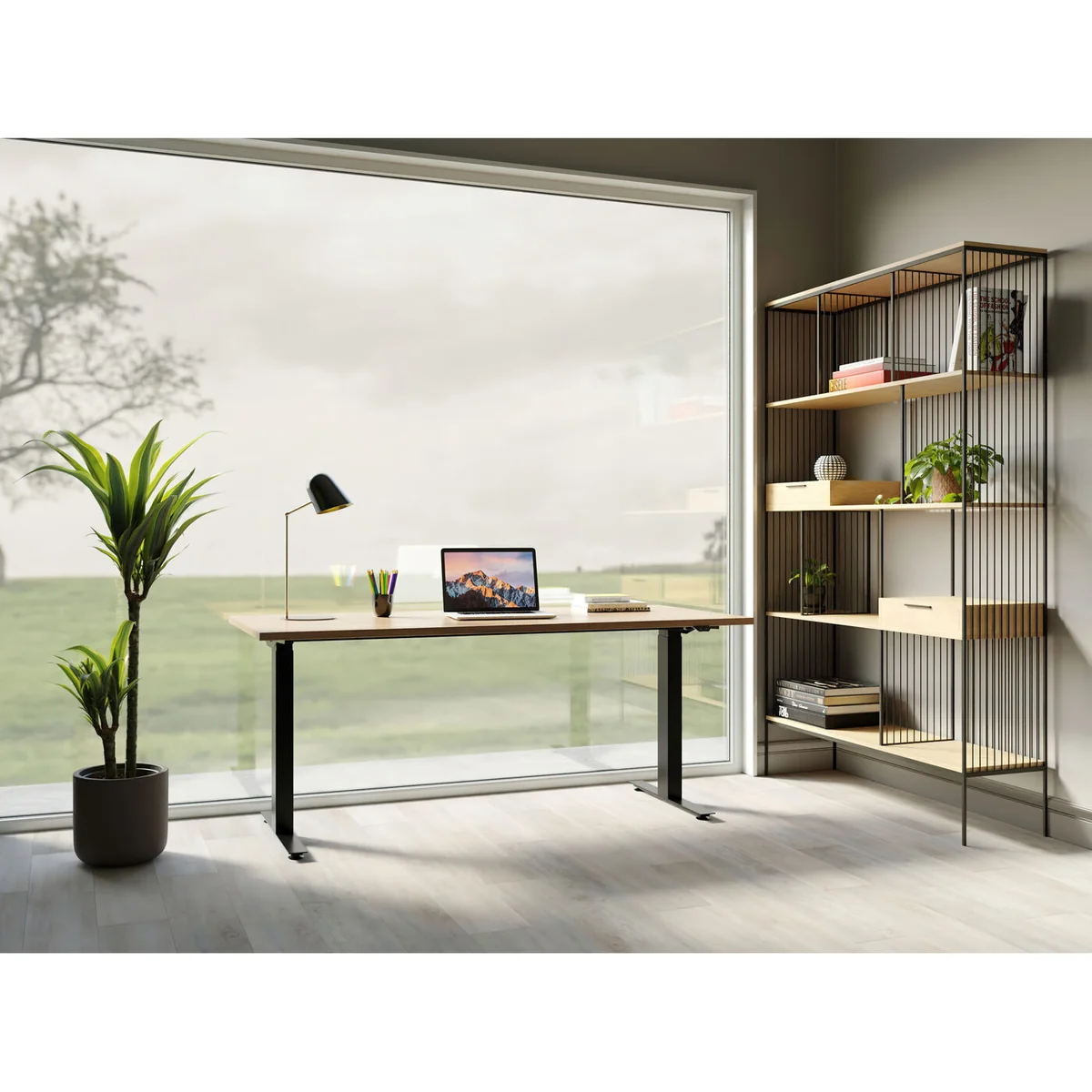 This 160x80 table features a robust tabletop made from solid oak wood, lacquered for extra durability. Its deep black hue brings a sophisticated touch to any office space. The table’s dimensions, L 160 cm | D 80 cm | H 70 cm, make it a versatile piece that can accommodate all your work essentials.