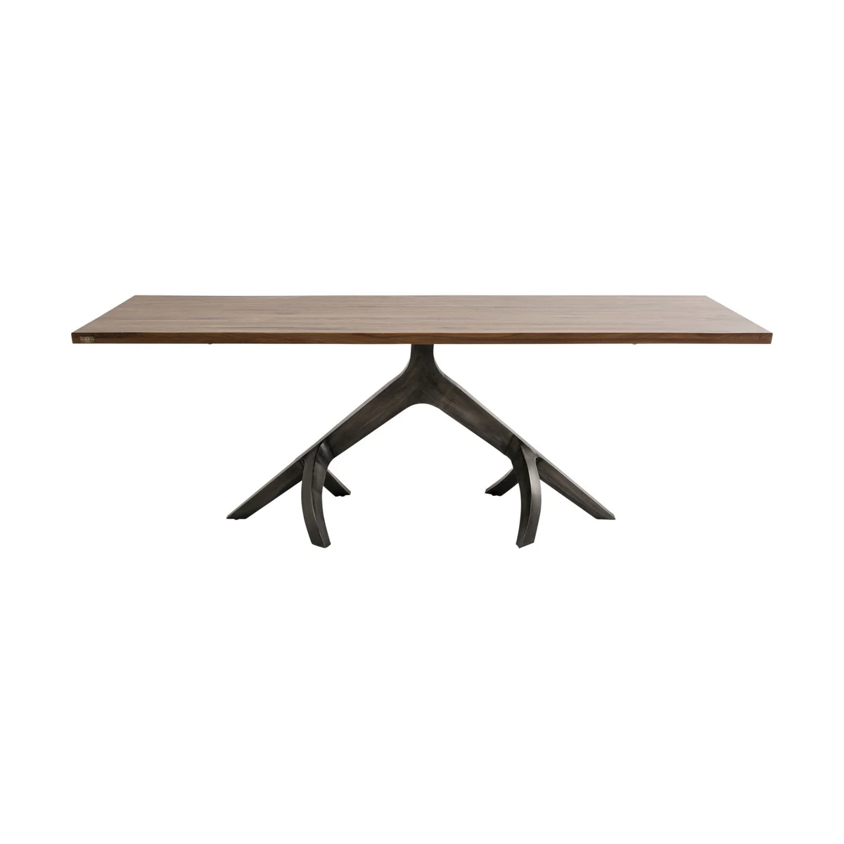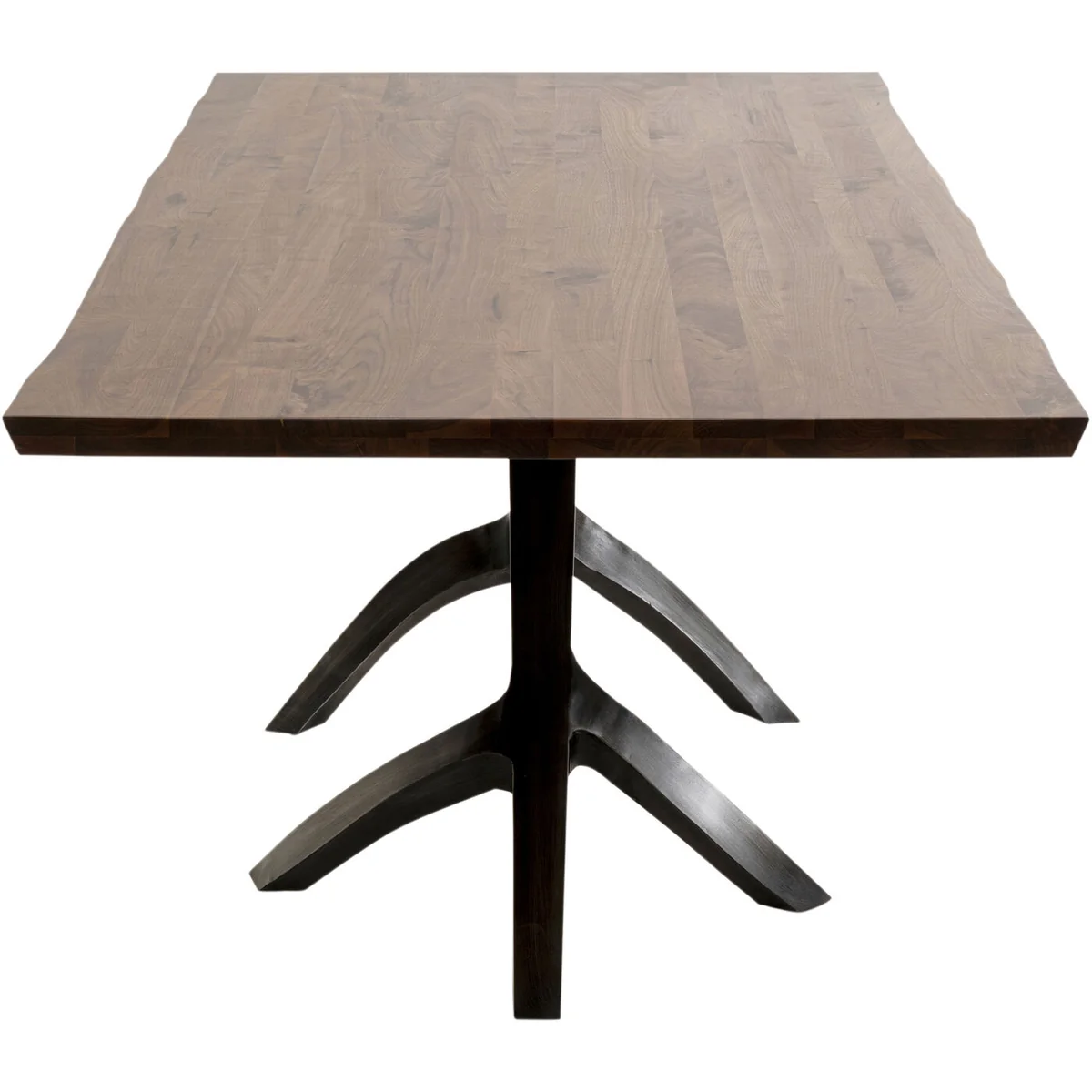 Anchor dining spaces with a rectangular Roots table in dark brown, scaled to seat six to eight comfortably. Natural wood grain adds depth and warmth across both rustic and modern interiors. Matches other pieces in the Roots collection for a consistent setting.