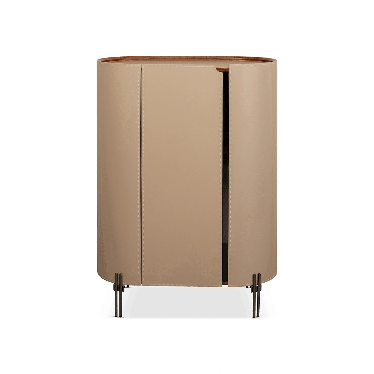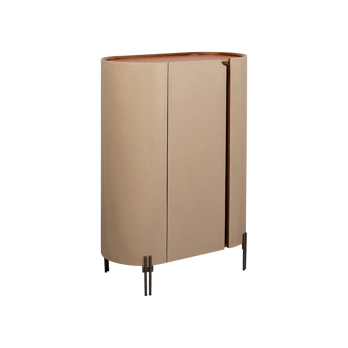 The Tango Beige Cabinet in polyurethane-coated textile and stainless steel is a stylish statement piece for contemporary homes.