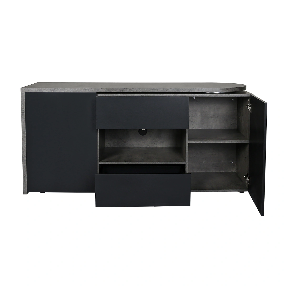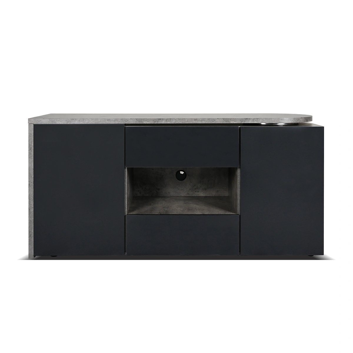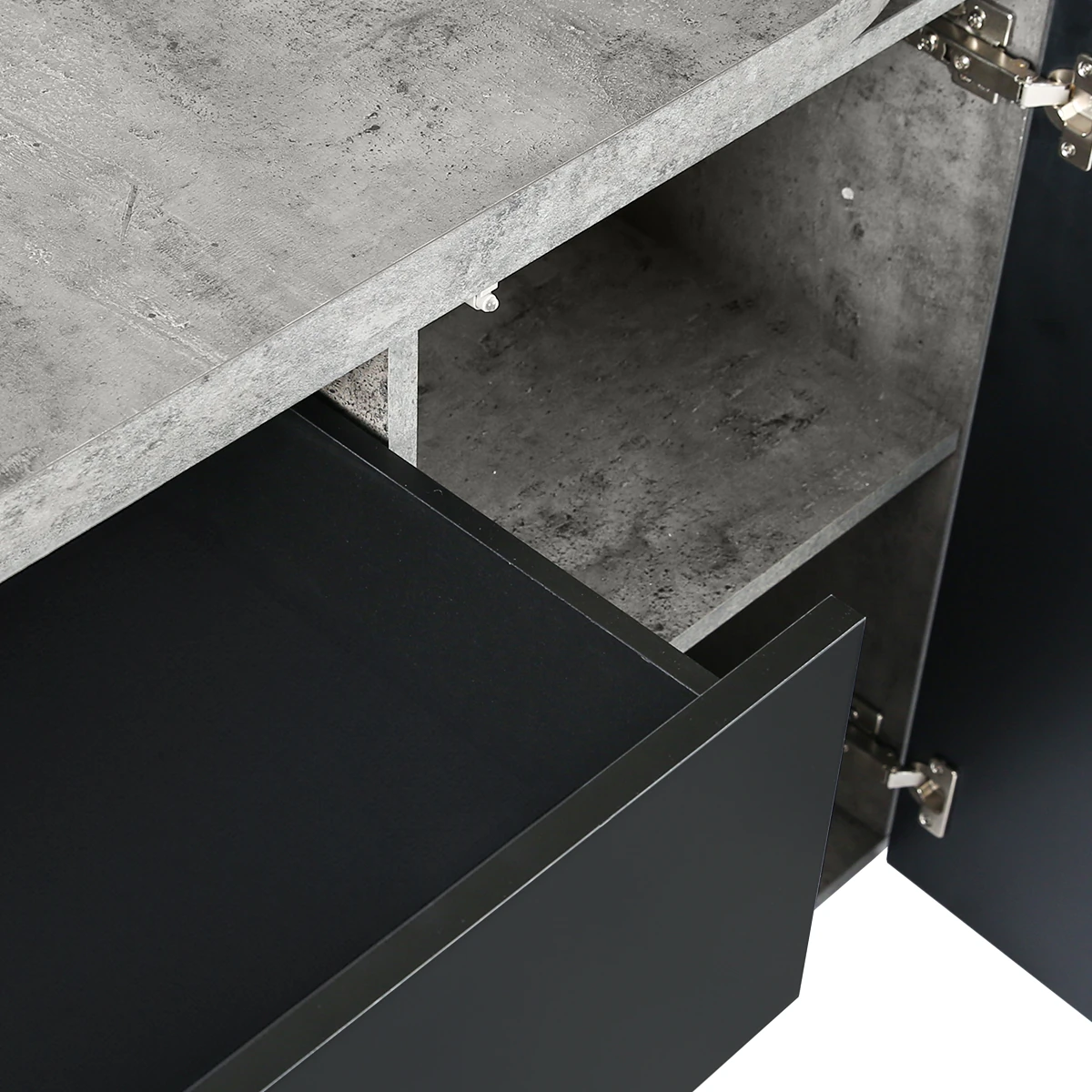 Structure And Top Made In Chipboard Covered With Melamine In Concrete Look. Door, Drawers And Front Panel Made In Mdf Lacquered In Mate Black