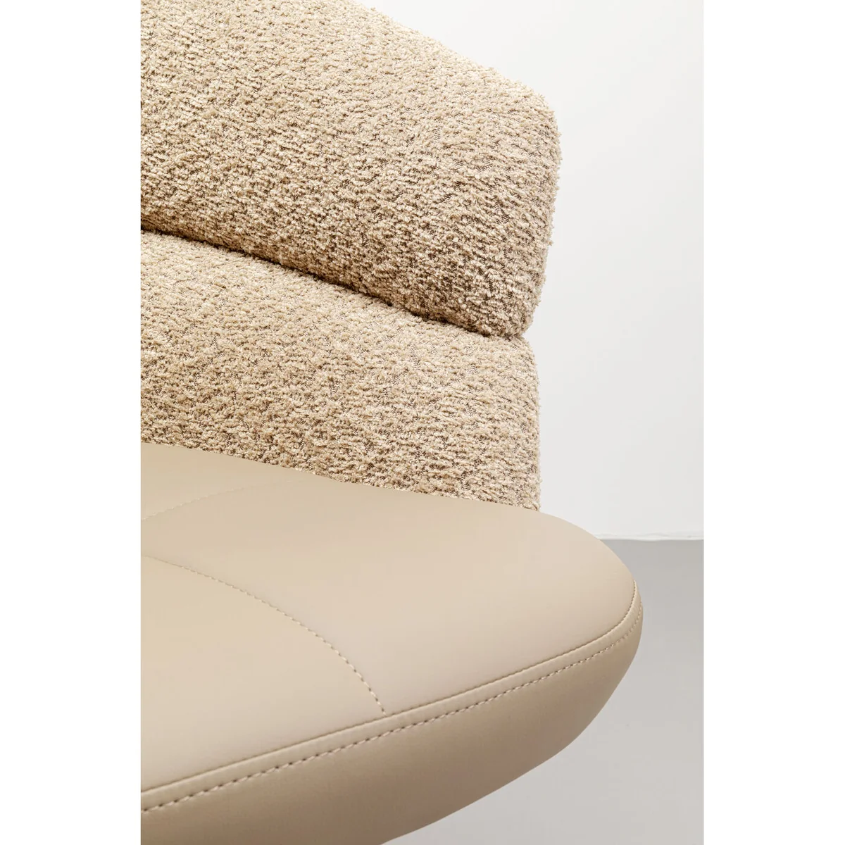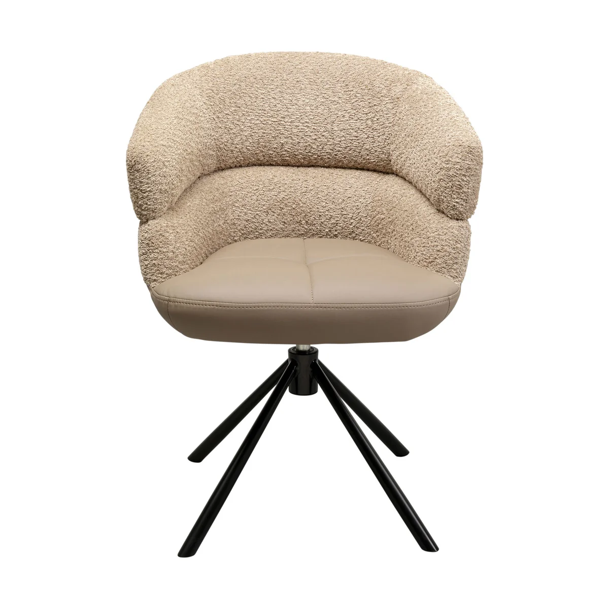 The Tasty Swivel Dining Chair in Beige Bouclé and Leather Look is a modern marvel, offering a refreshing spin on interior design. With its seamless blend of soft bouclé and smooth leather look, this swivel chair showcases a style that's contemporary and functional.